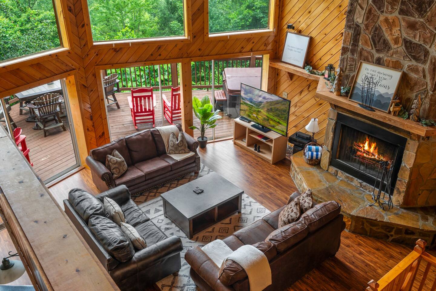 Step inside to discover a thoughtfully designed living space that balances comfort and functionality. The main living area features soaring ceilings, a stunning wood-burning fireplace, and large windows that frame breathtaking mountain views. Whether you're curled up by the fire or enjoying the scenery from the screened front porch or sunny decks, you'll feel immersed in the beauty of the Smoky Mountains.