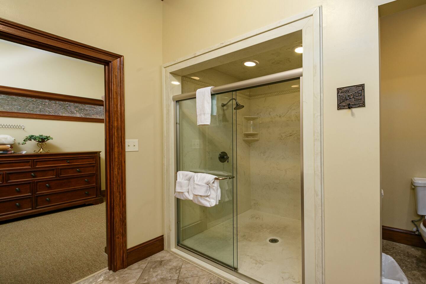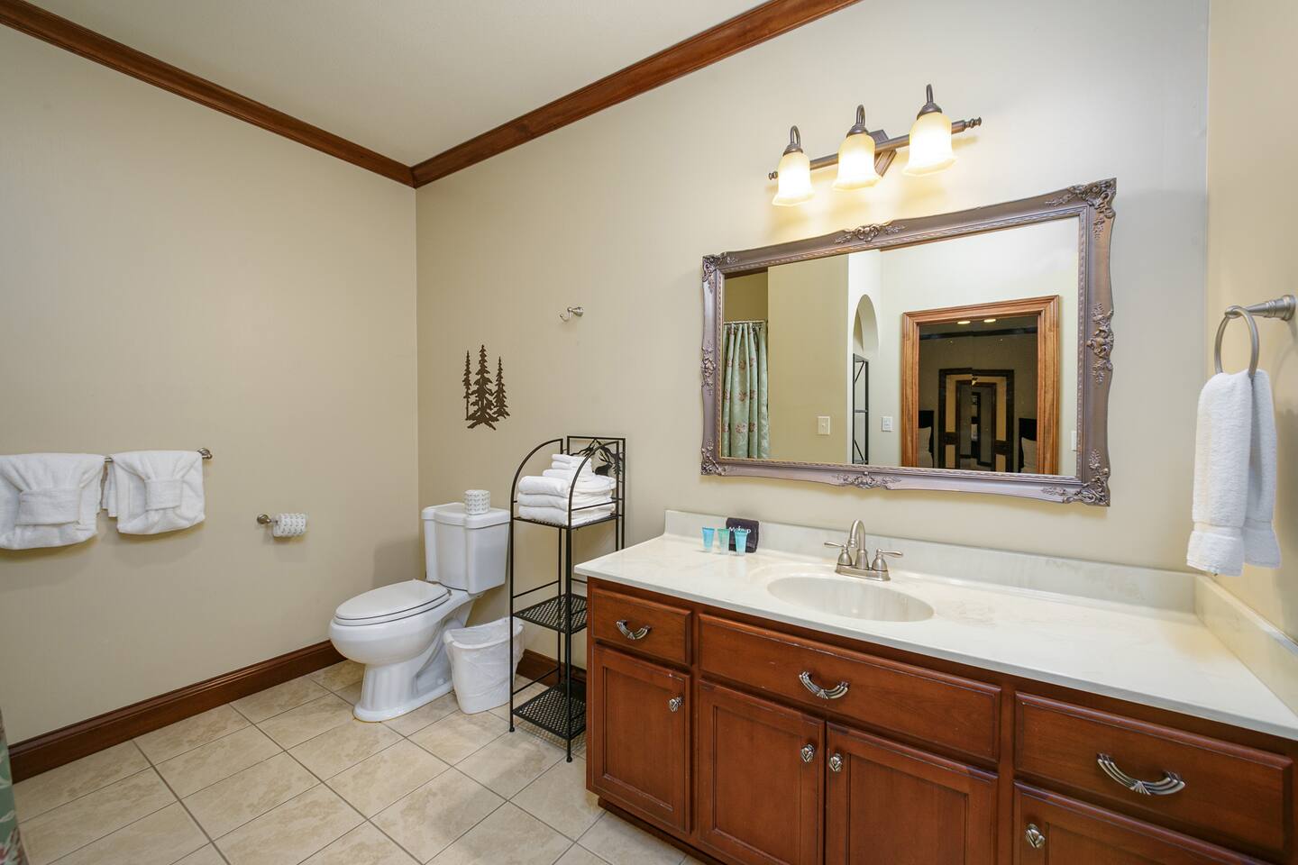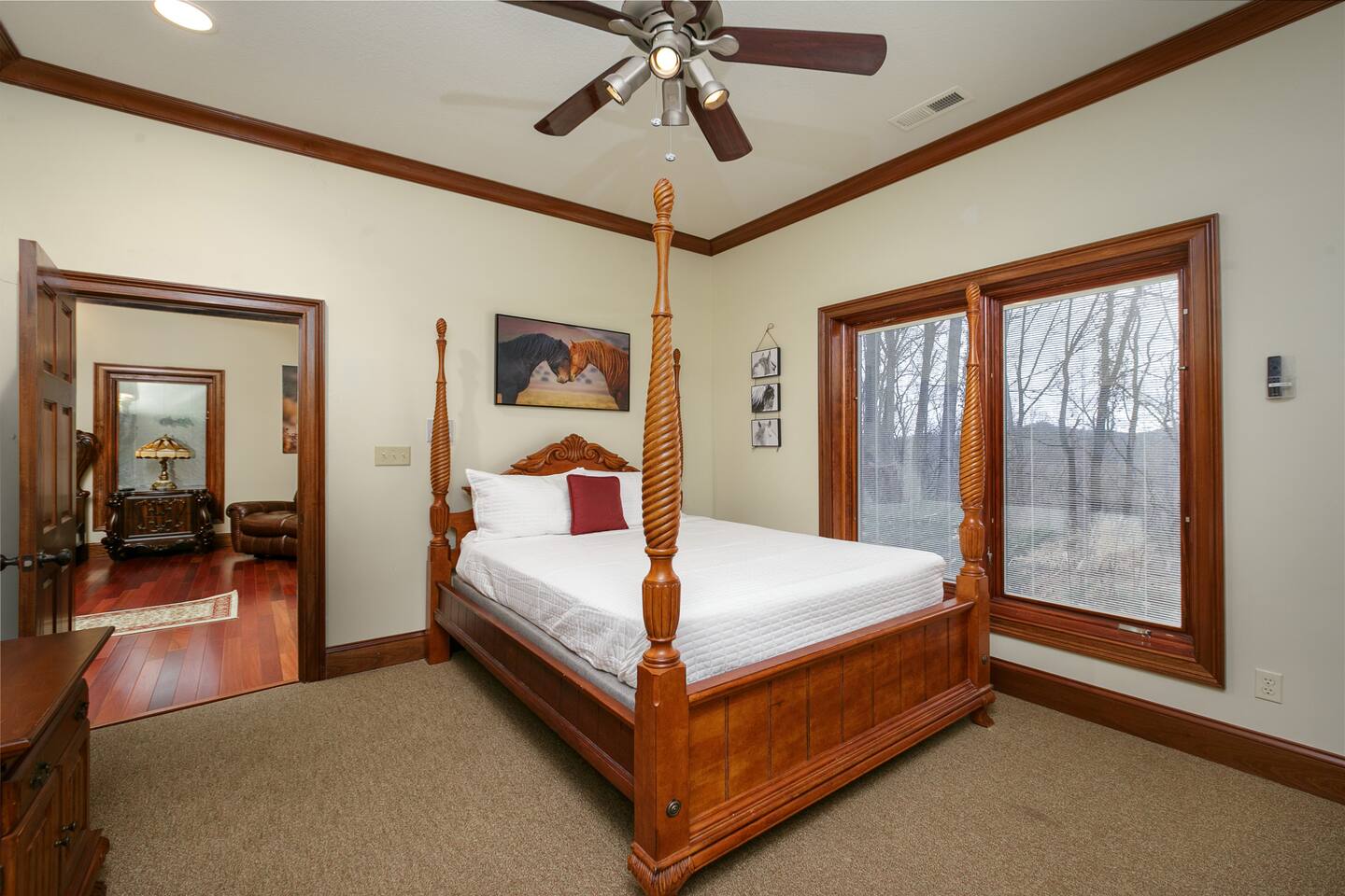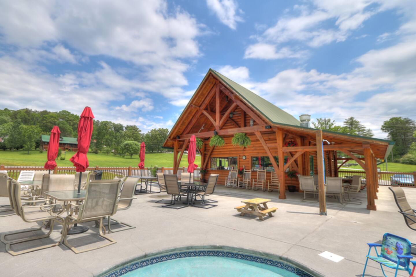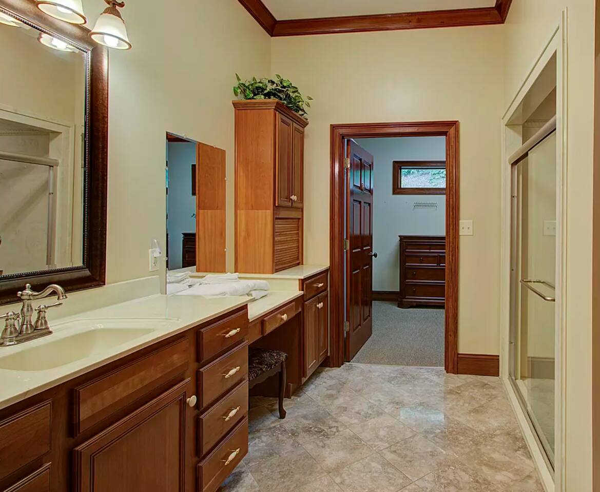 The property sits at the end of a private drive in the middle of five acres of wooded tract. This is truly a property you'll need to see to believe. Pool and fishing pond access are included with your stay. Many families book year after year so the calender fills up fast!