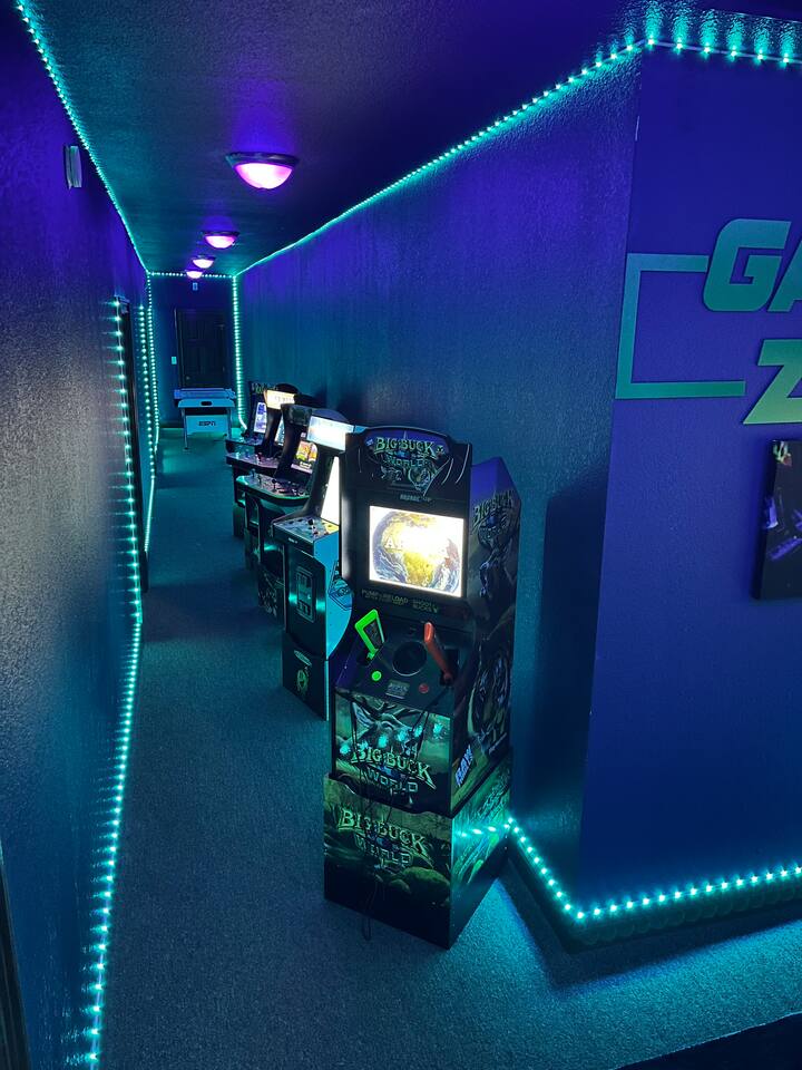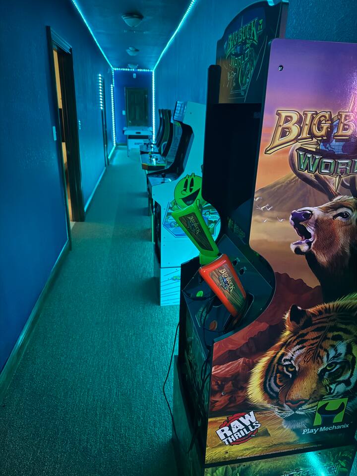 The arcade has Golden Tee, Silver Strike, Big Buck Hunter, NBA jam, Ninja Turtles, Pac Man, and more.