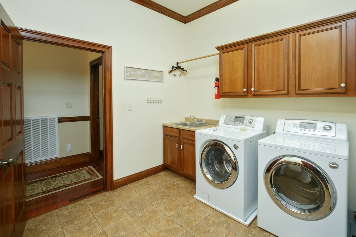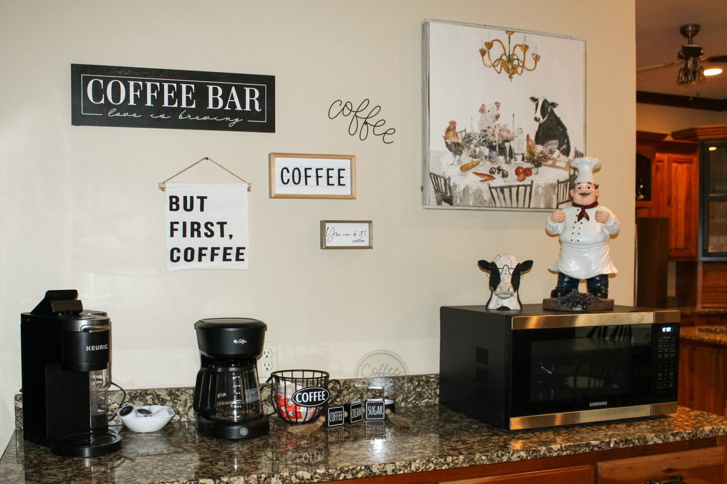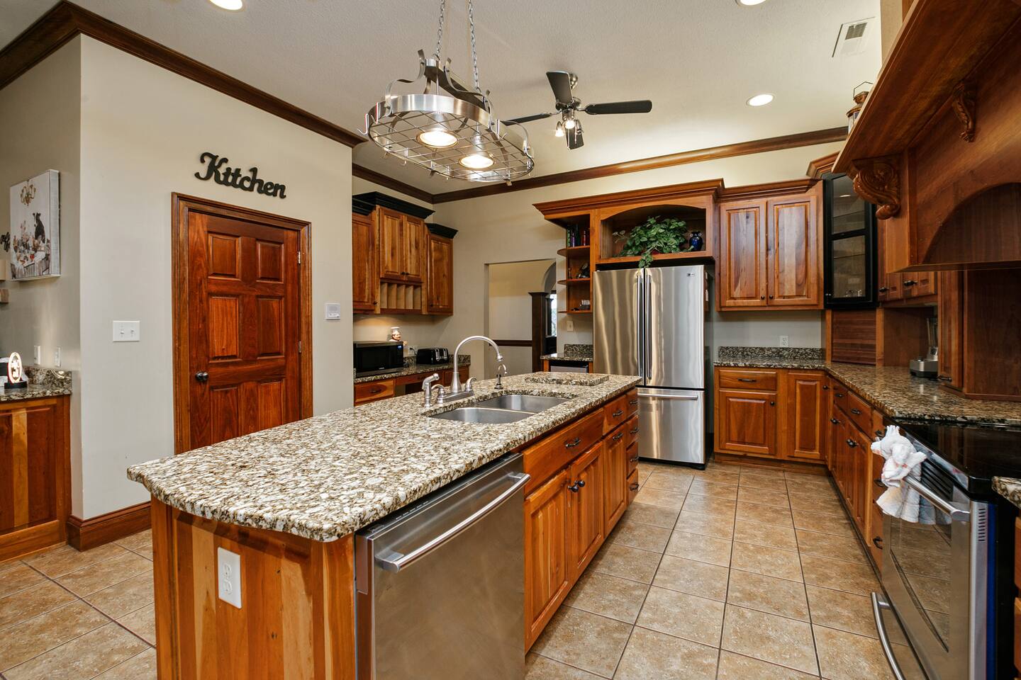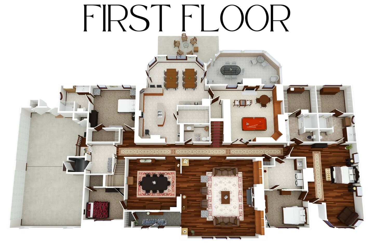 The parlor has a billiards table, poker table, chess table, and books to read. There is a formal dining room as well as a very large kitchen with two dining tables in addition to covered outdoor dining available. Three dining spaces!
