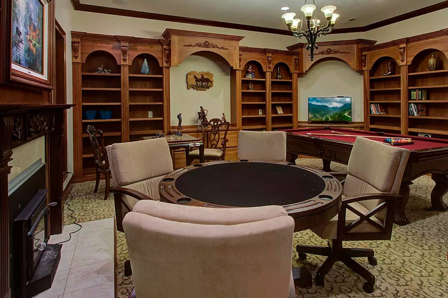 •Parlor w/billiards, poker, library, and chess
