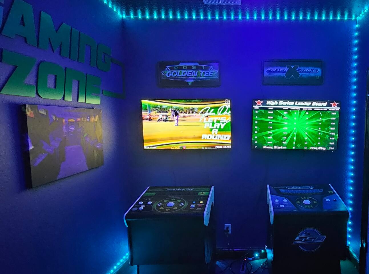 The “gaming zone” has two professional arcade games, Golden Tee and Silver Strike.