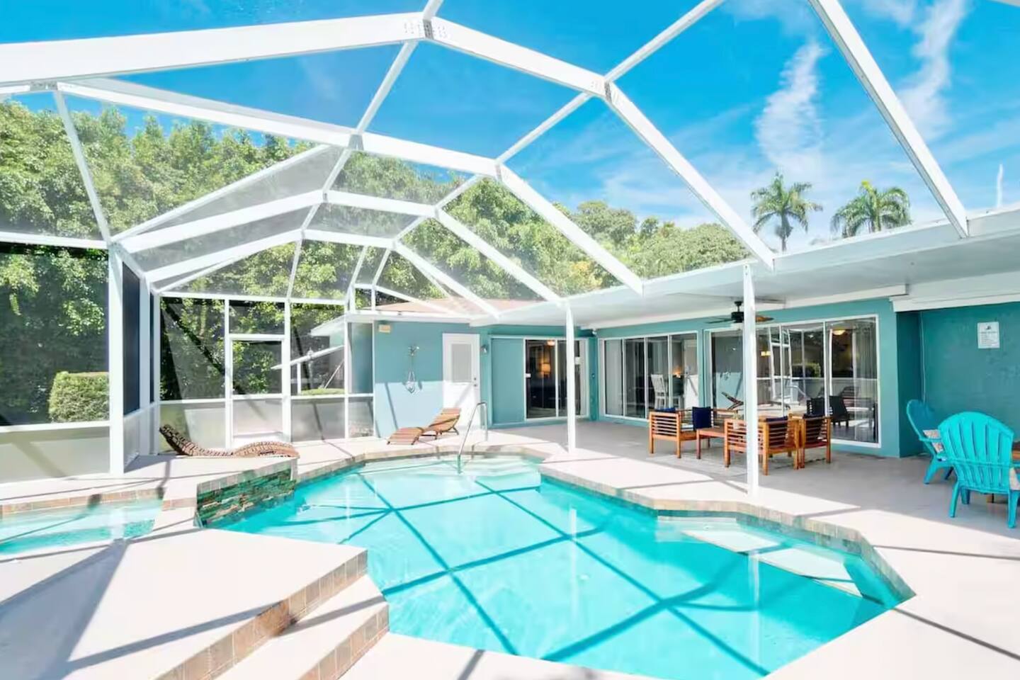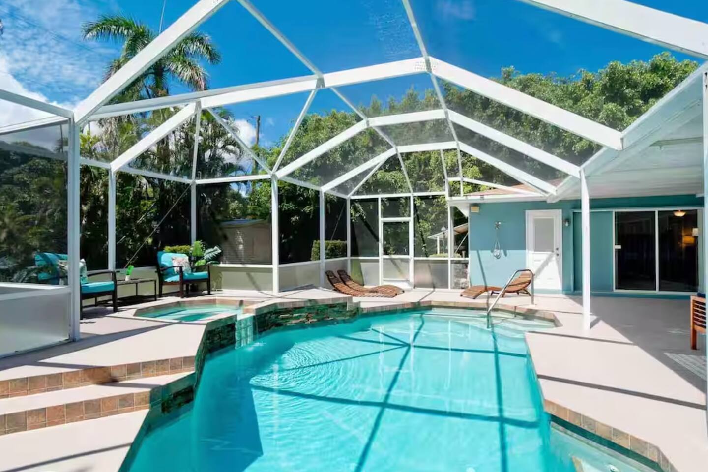 Spacious Bradenton retreat with two homes on one private, fully fenced lot—perfect for families and groups! Just 15 minutes to Anna Maria Island, this 5-bedroom property features a heated pool, hot tub, outdoor shower, BBQ, and large kitchen for gathering. Family-friendly and packed with amenities, plus Manatee River access across the street. Your Florida escape starts here.