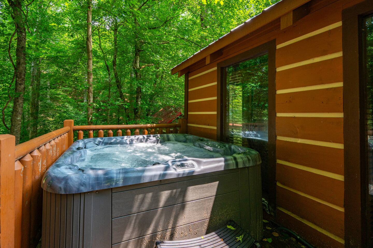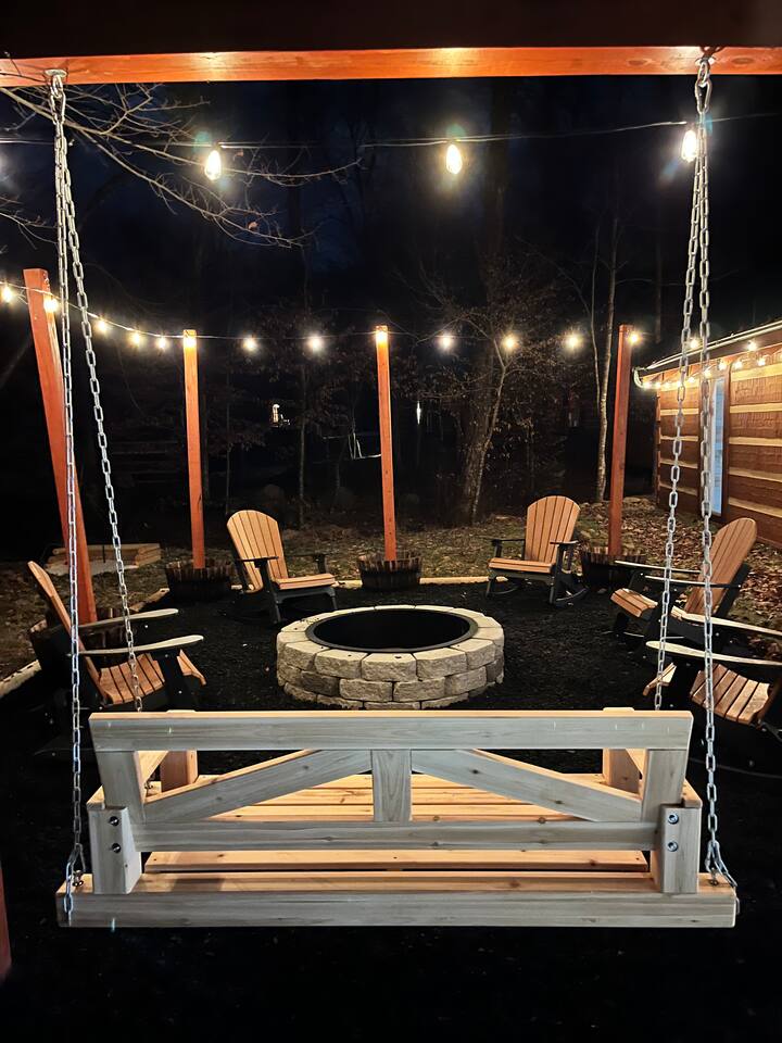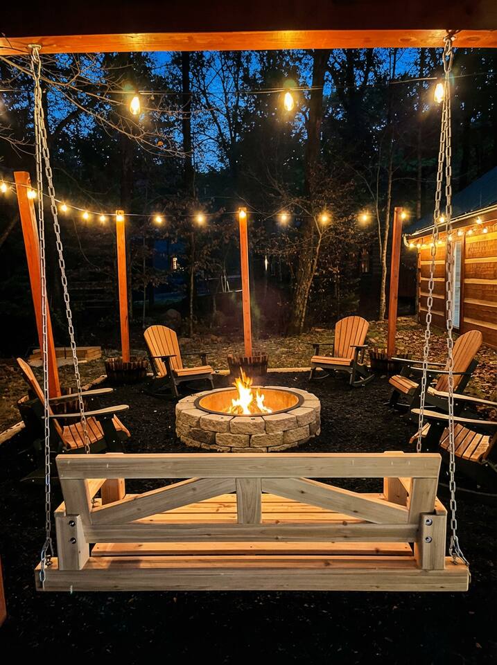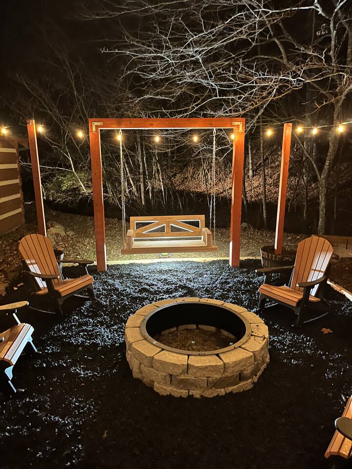 Step outside to your private backyard oasis with a soothing hot tub, fire pit for cozy evenings under the stars, and outdoor seating surrounded by peaceful mountain sounds and a babbling creek.