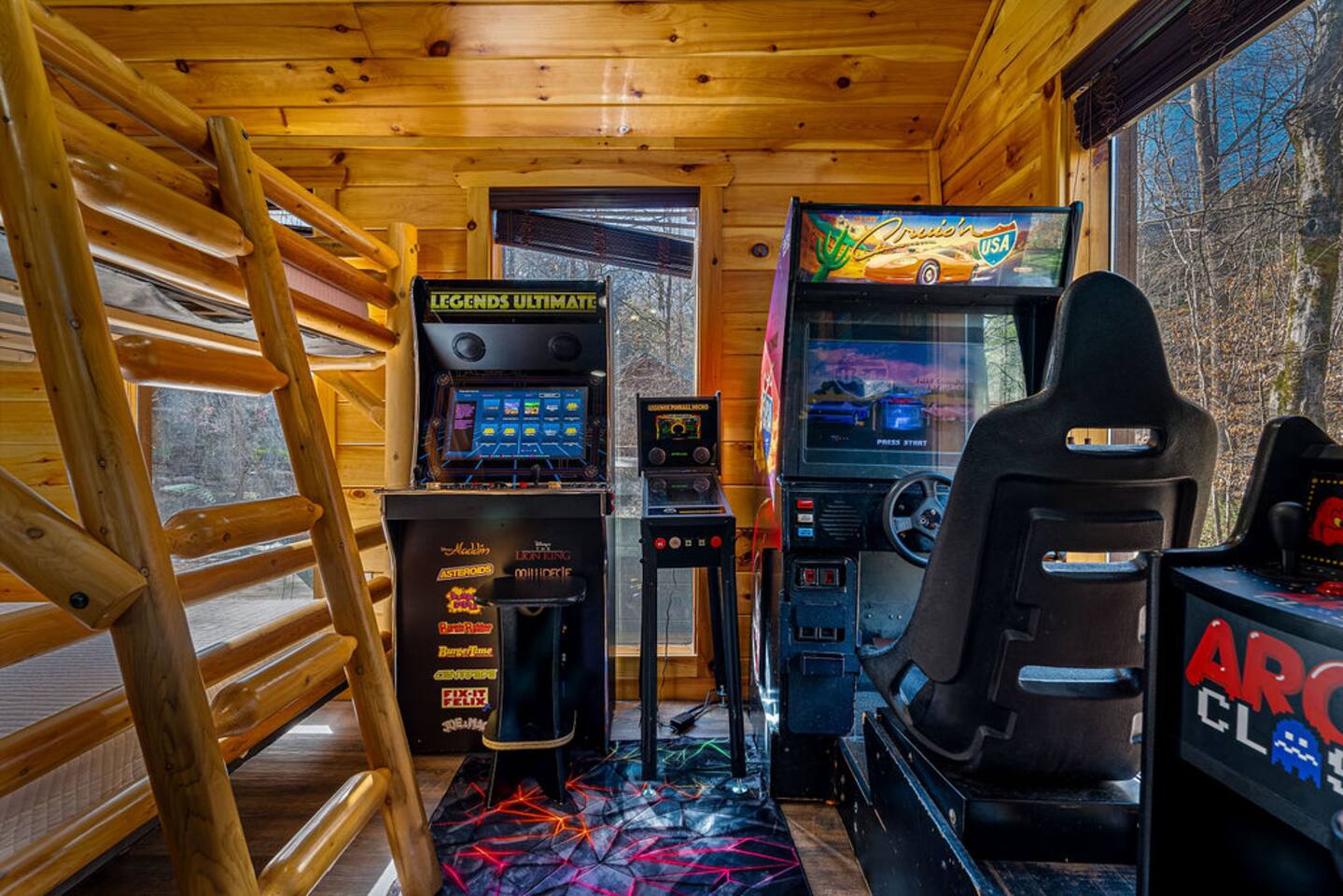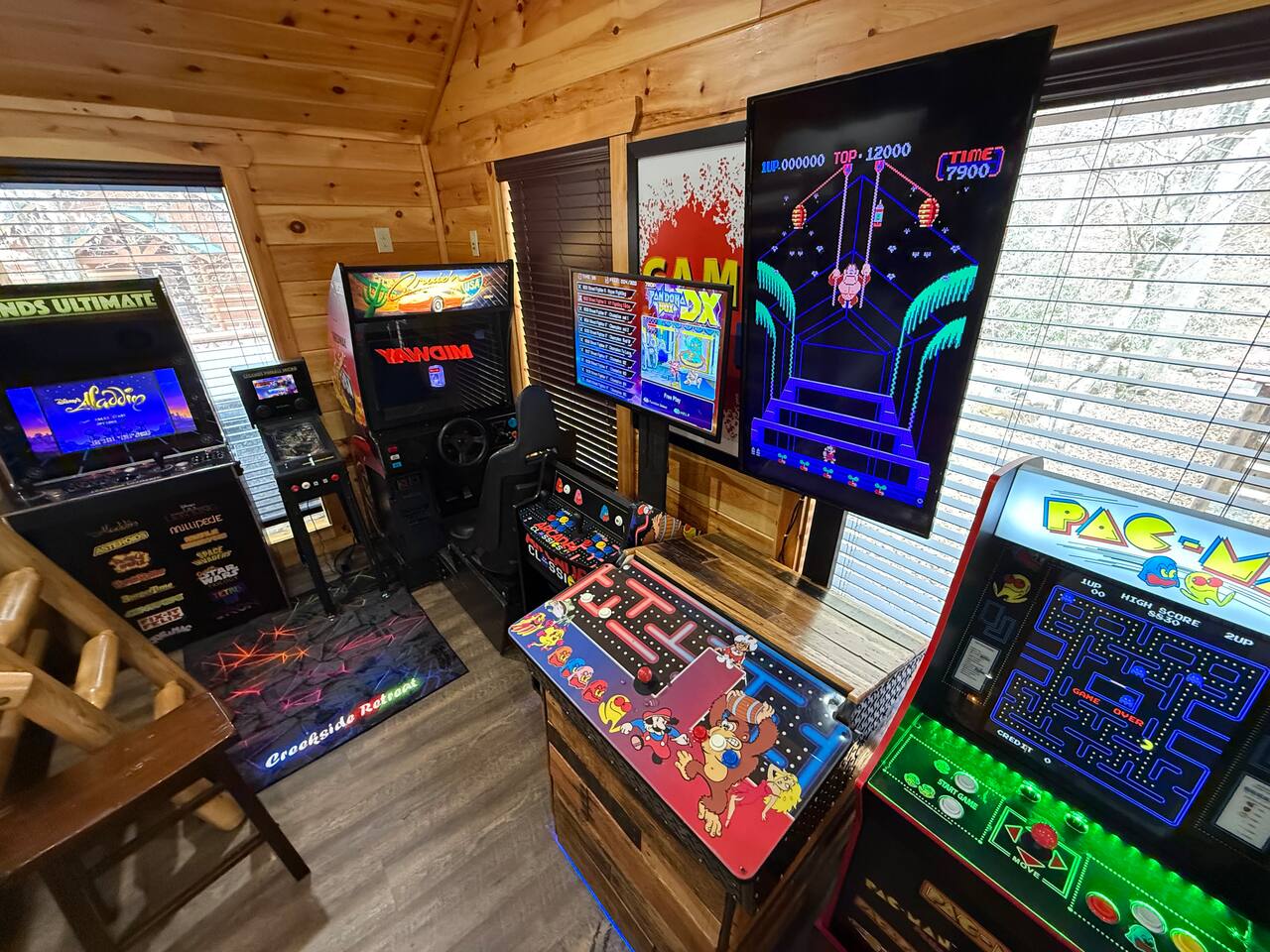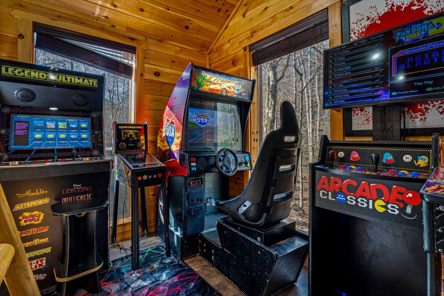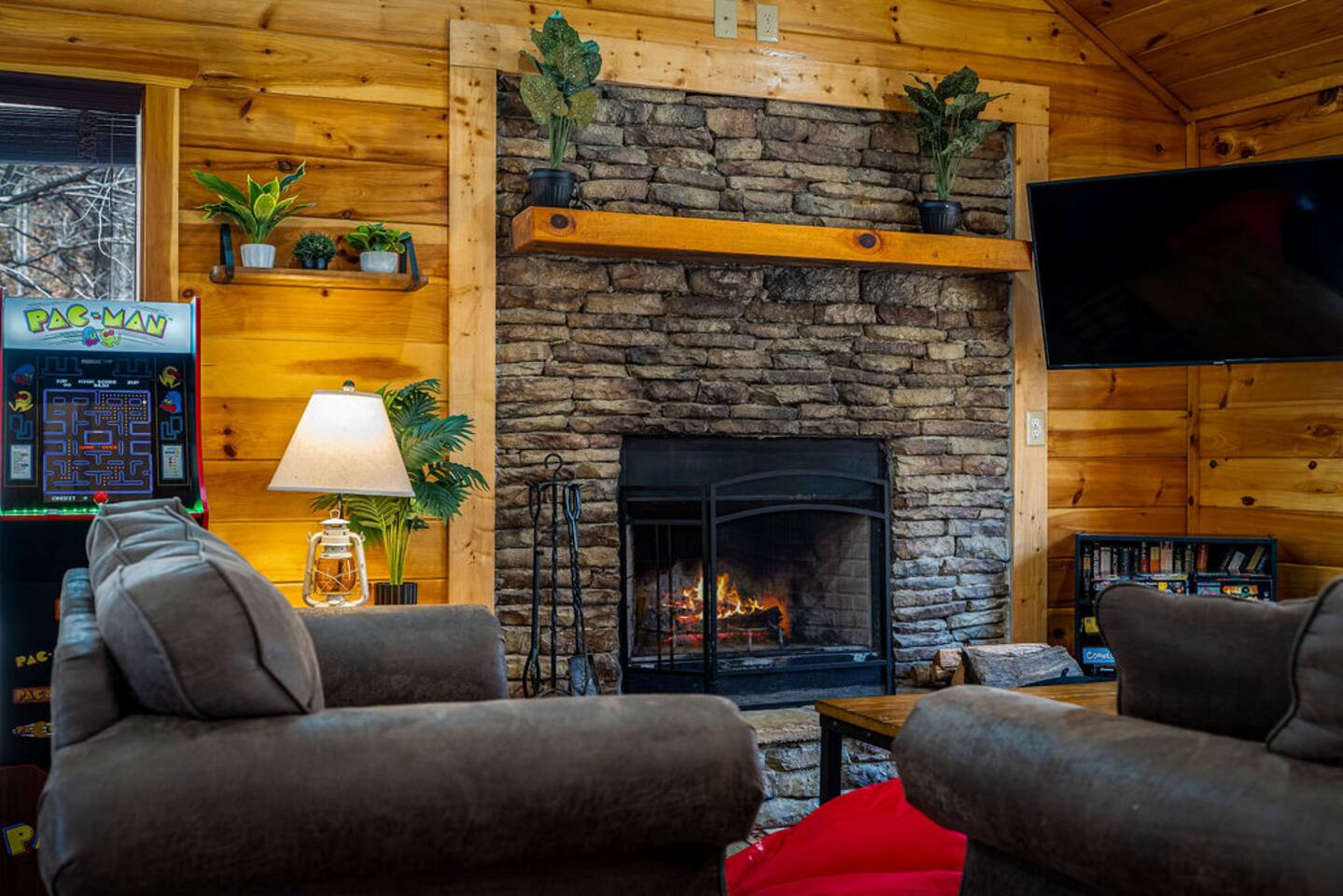Keep everyone entertained with a built-in arcade machine, board games, and fast WiFi. The cabin also features smart TVs and streaming options.