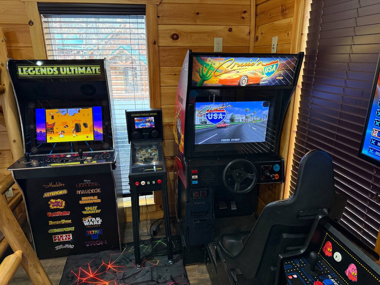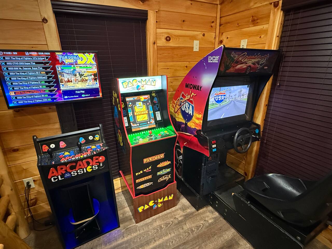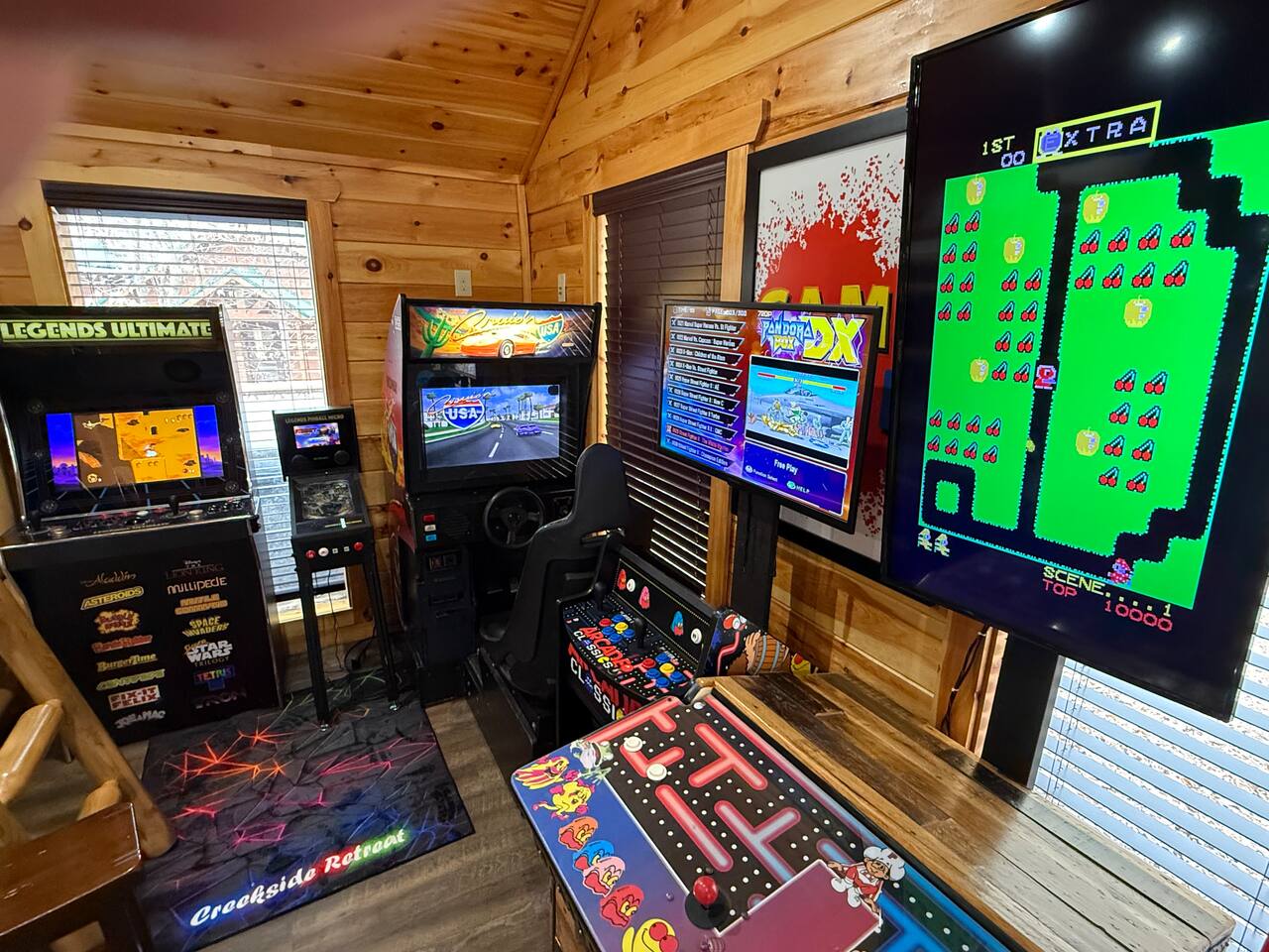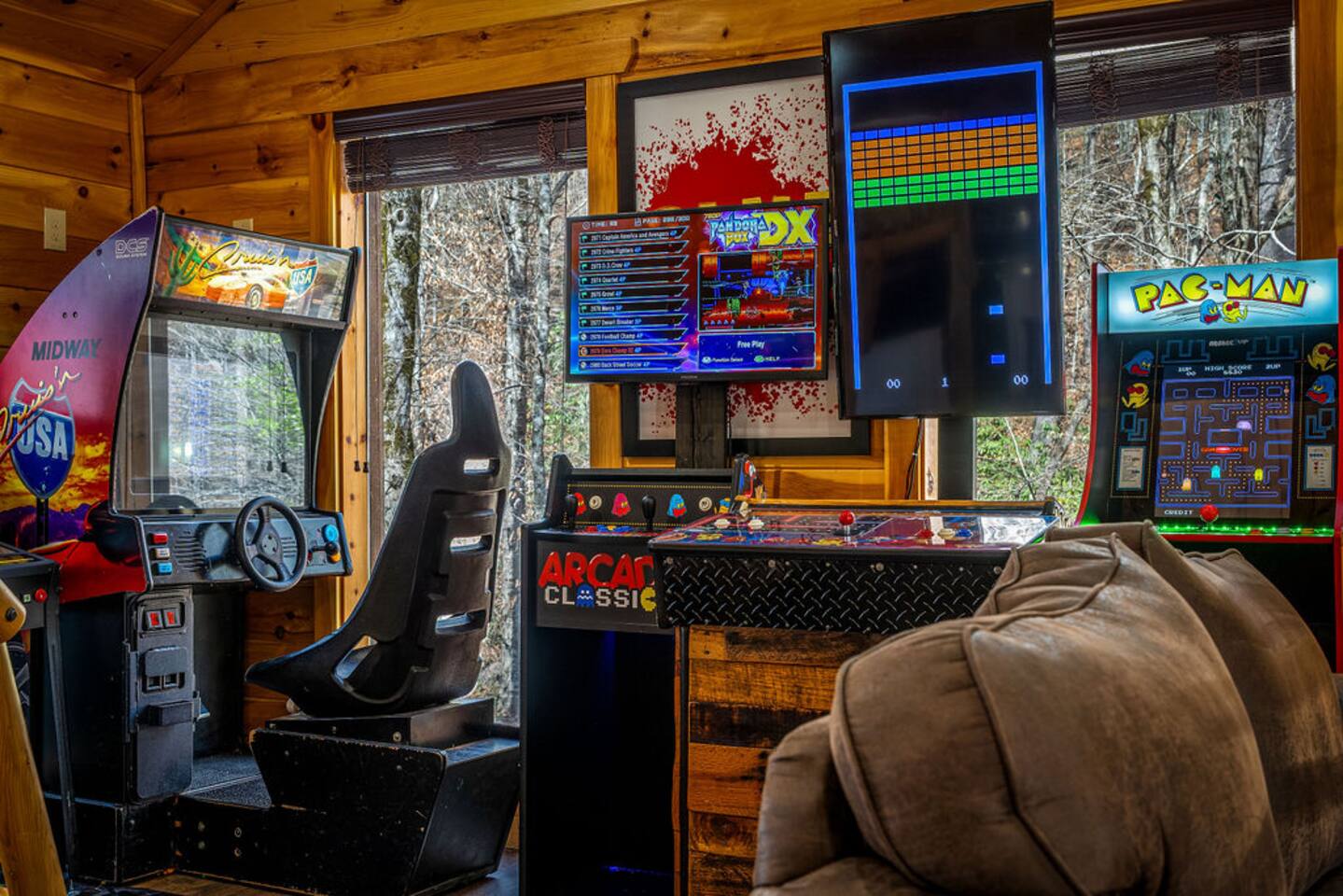 Keep everyone entertained with a built-in arcade machine, board games, and fast WiFi. The cabin also features smart TVs and streaming options.