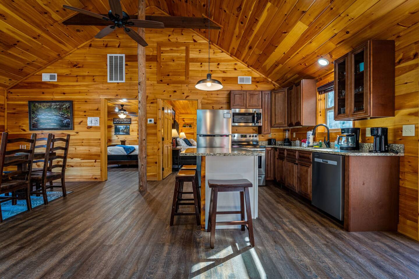 This fully accessible, single-level cabin includes ramp access and wide doorways, offering ease and comfort for all guests.