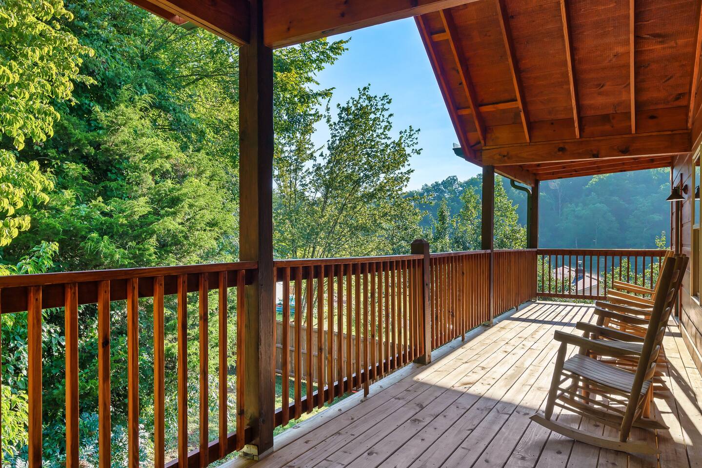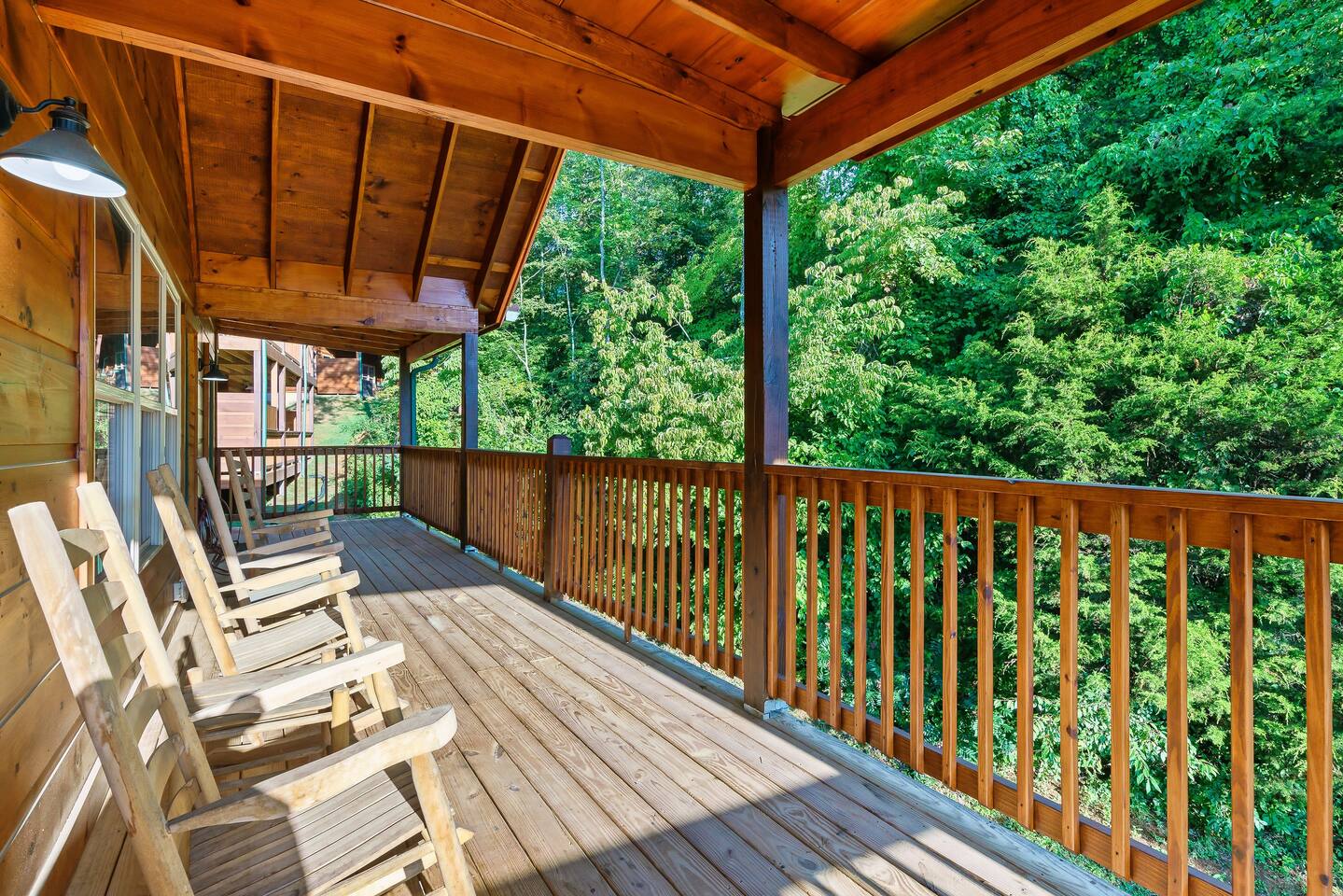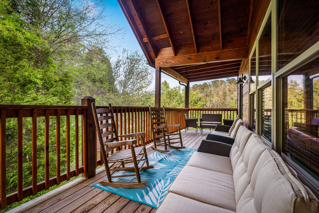 On the second floor you'll find the third and fourth bedroom, which also have full size, private bathrooms. Each of the second floor bedrooms has access to the rear deck with rocking chairs for relaxation.
