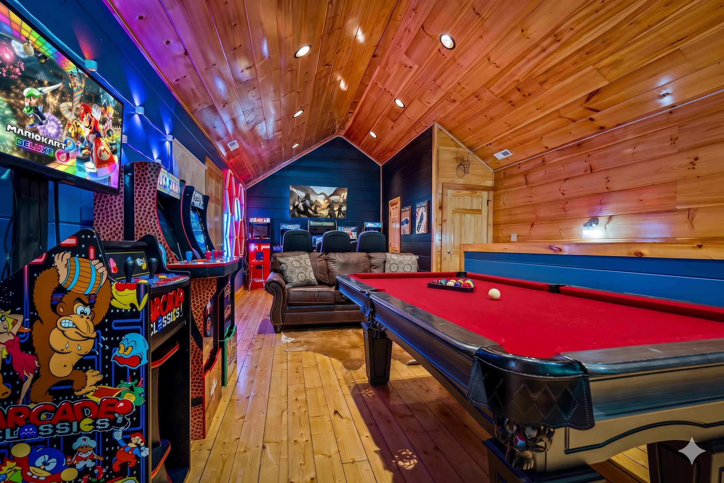 This cabin is so nice! Everything is clean. Beds are comfortable. Location is away from all the traffic but also super close to the strip. The roads aren’t steep, but the driveways is so keep that in mind. The theater room was so nice! We loved playing on the arcade machine, it had ALL the games. It’s nice having a tv in every room also. We will keep this place in mind when staying again!!