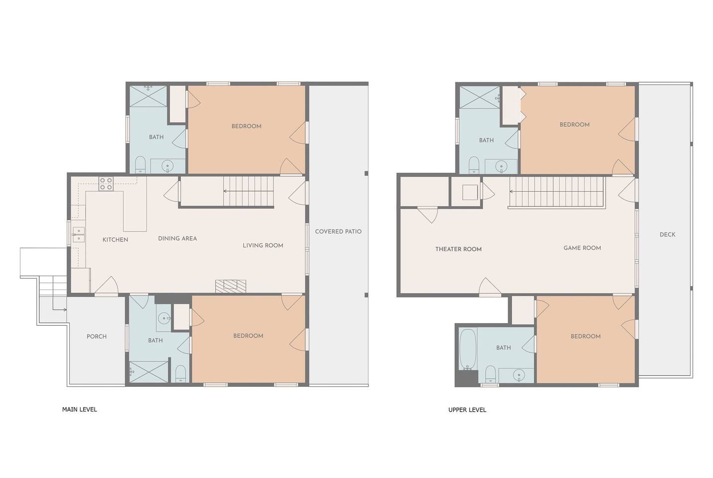 For larger groups, there are two pull out, queen size sofa beds; one in the first floor living room and the other in the second floor theater room. For your convenience, there is also a half bath next to the theater room.