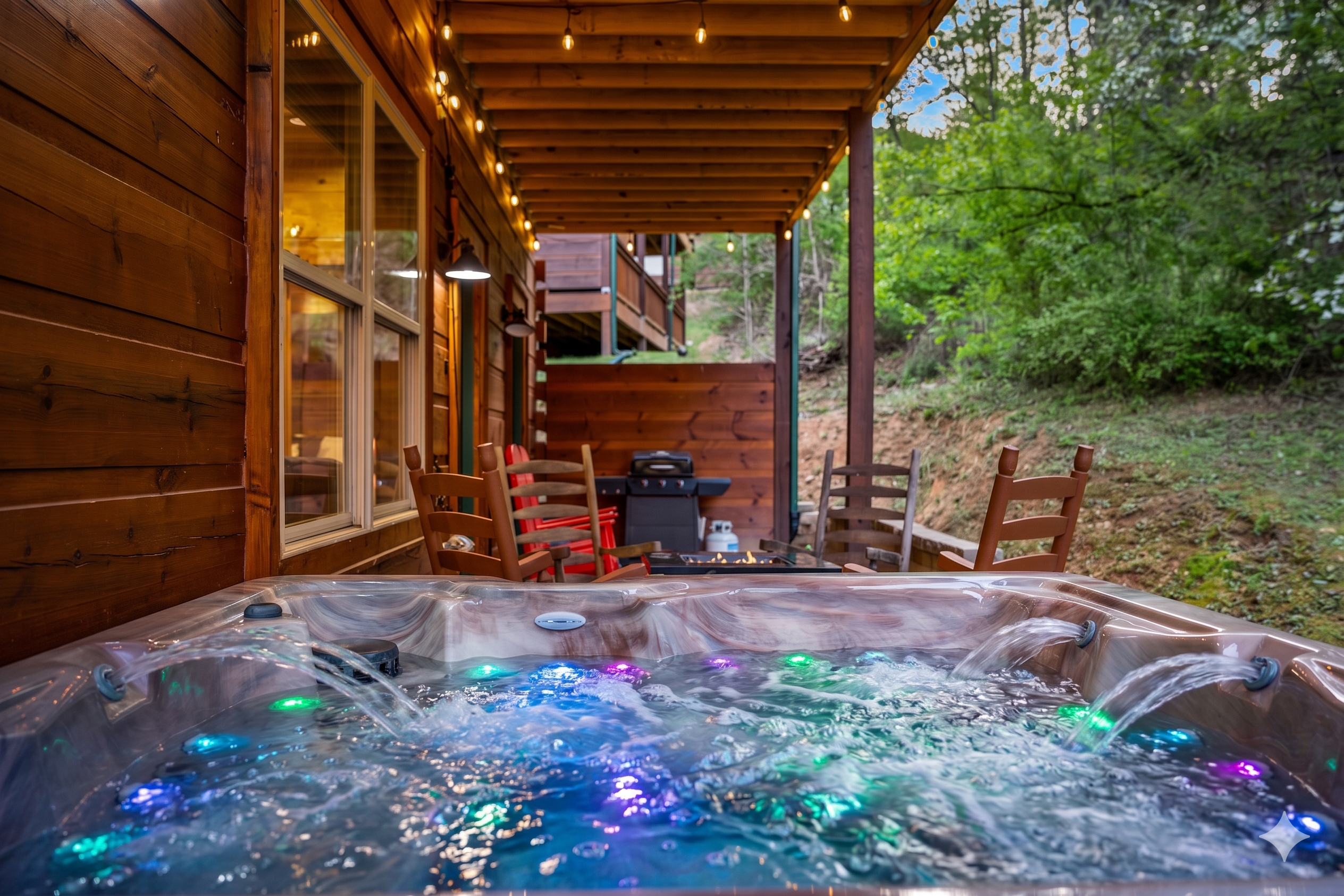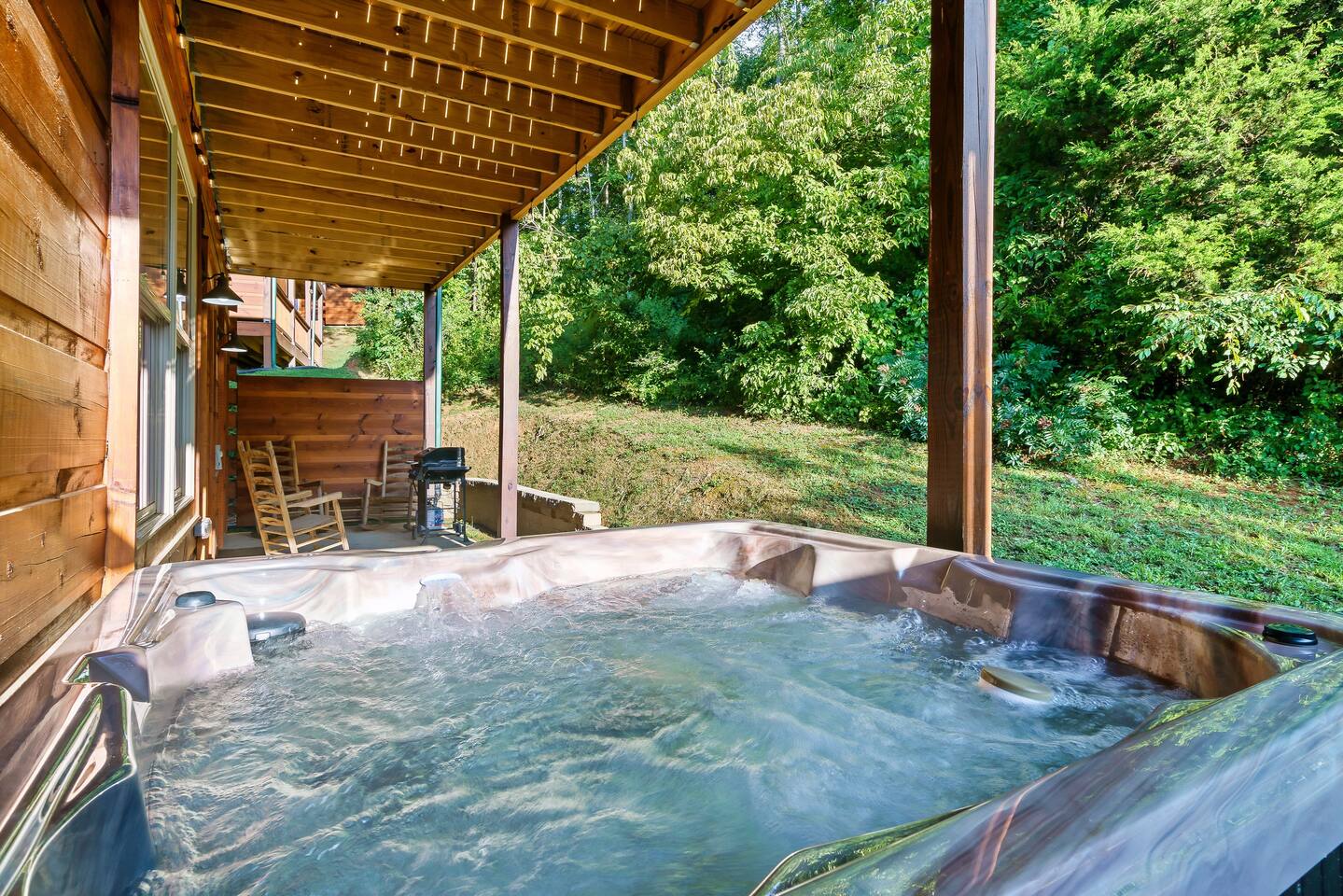 ★ Hot tub facing a wooded area