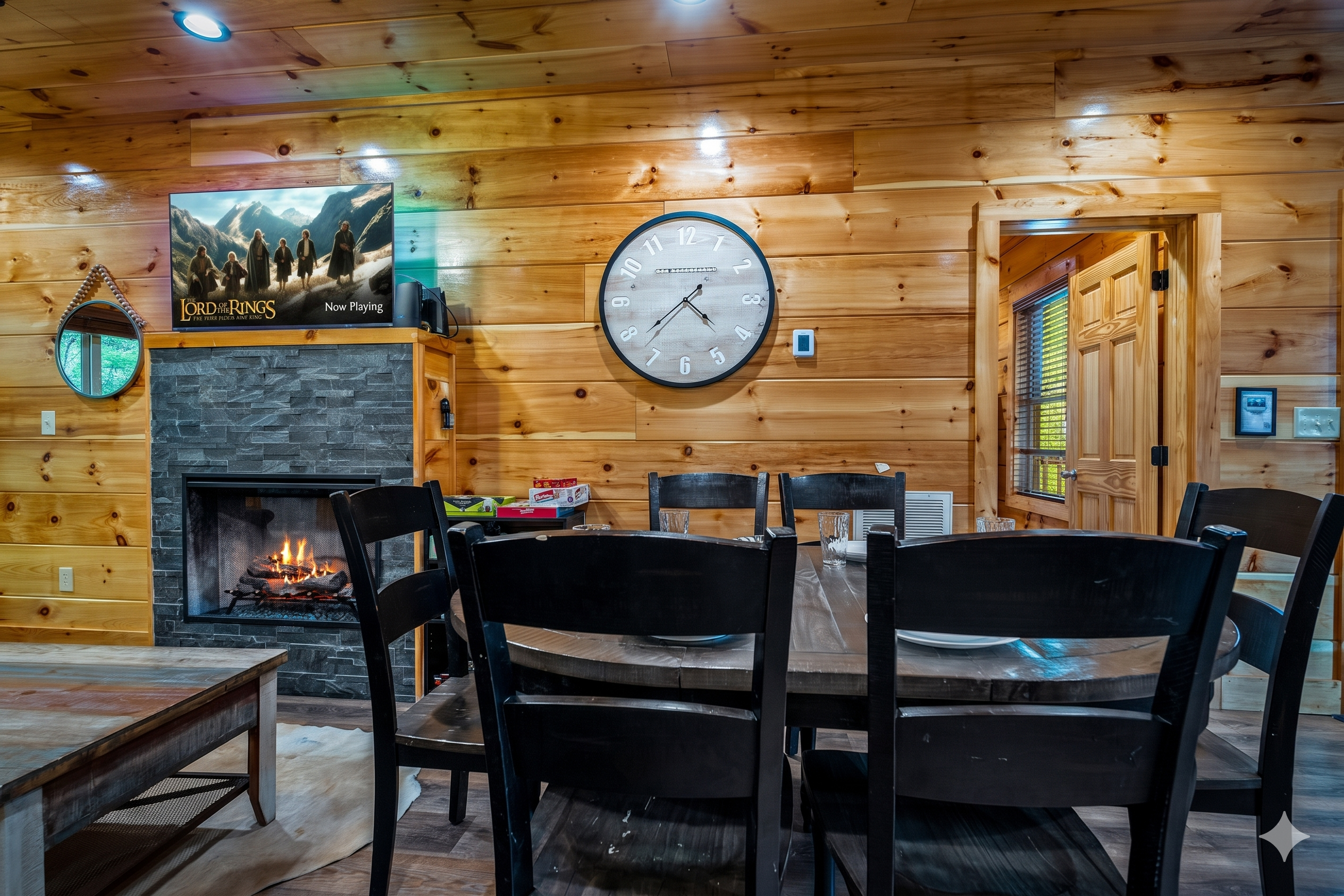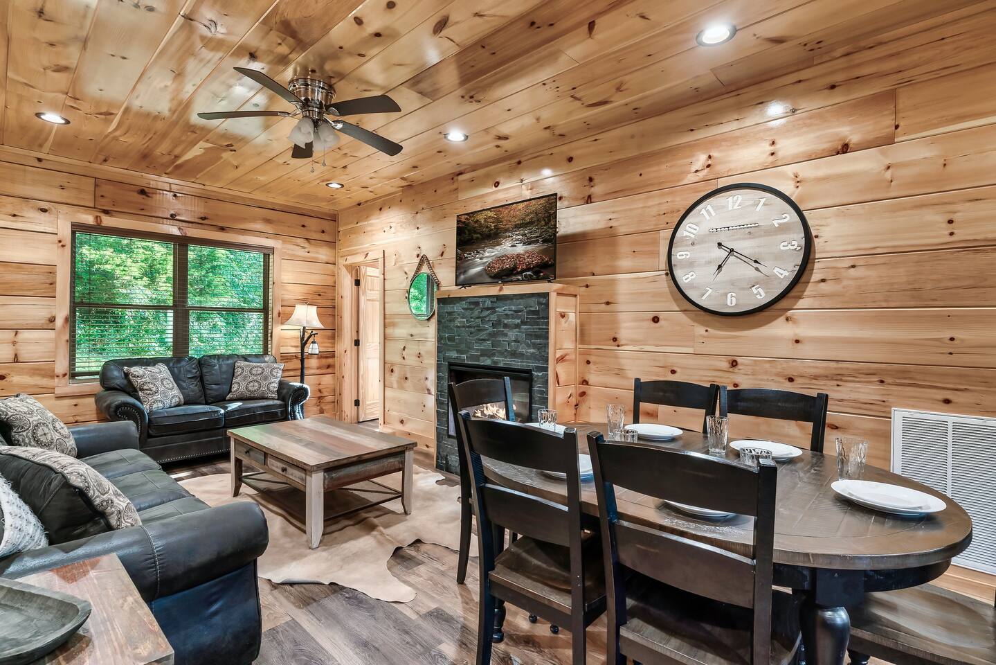 Really enjoyed our time spent here! It was a great space for our family of 6. We enjoyed being so close to everything in town and hanging out upstairs as a family watching movies and playing pool. Cabin was clean and as described!