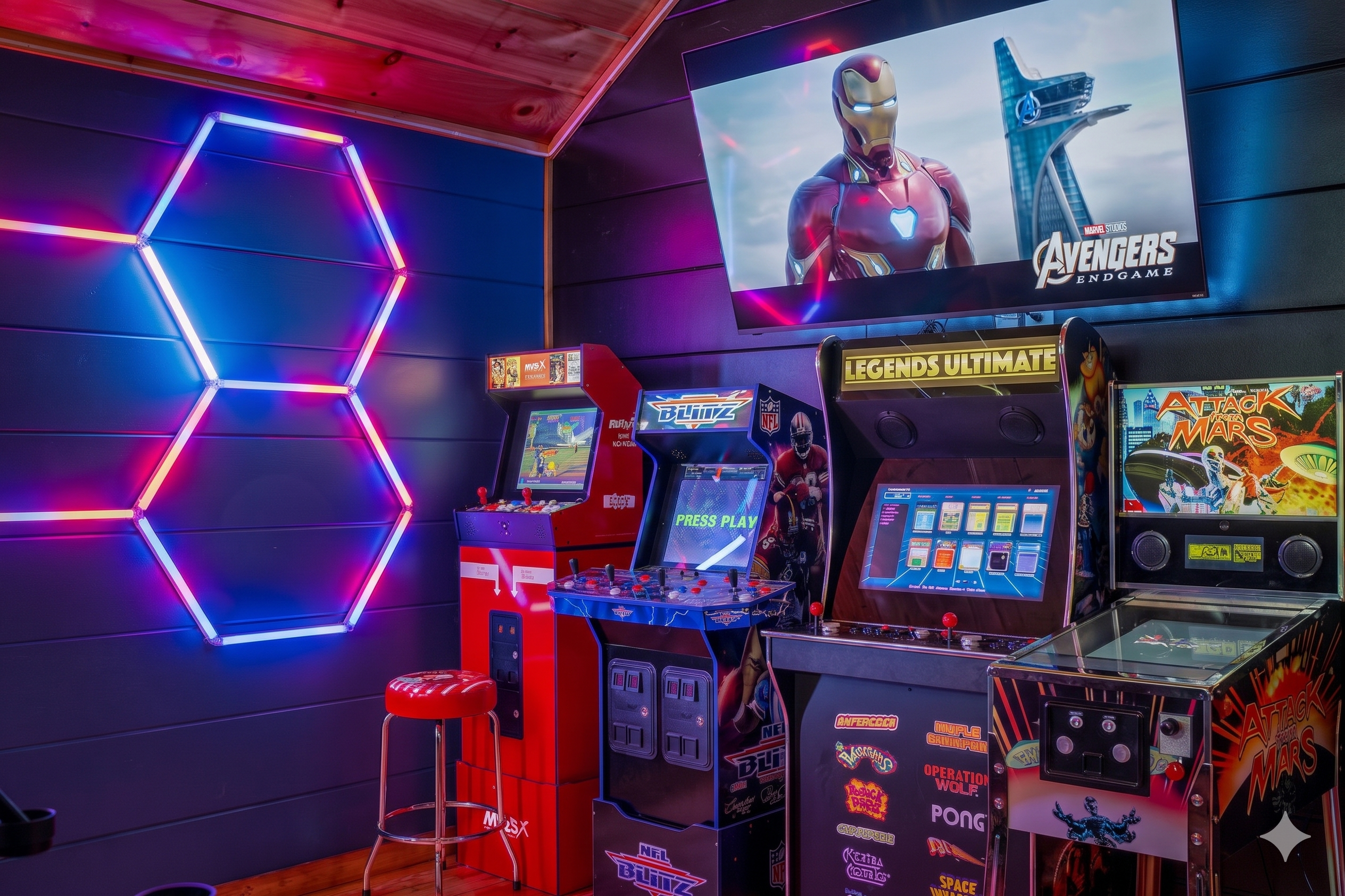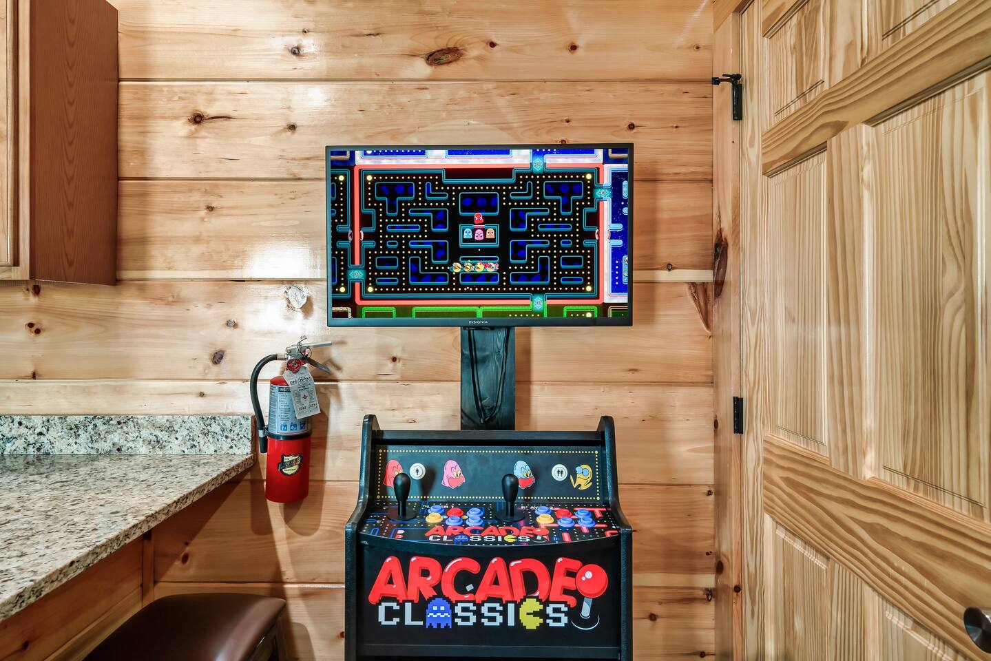 Downstairs, between the kitchen and living space you'll find a multicade with some of your favorite classic arcade games. Take on the challenge of setting the high score!