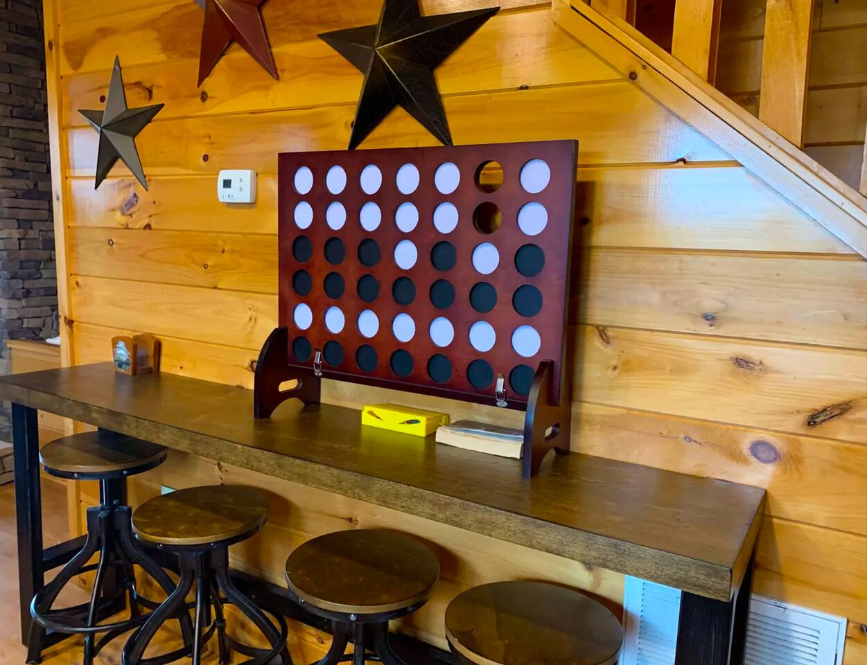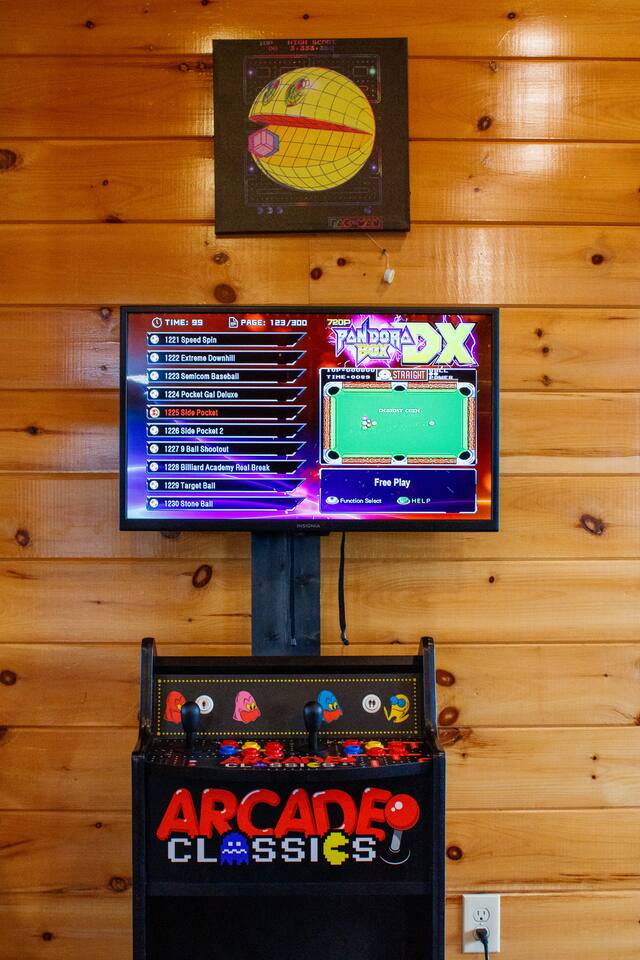 -Equipped with X Box, mini fridge, arcade, LED lights, bar, and views from every floor.