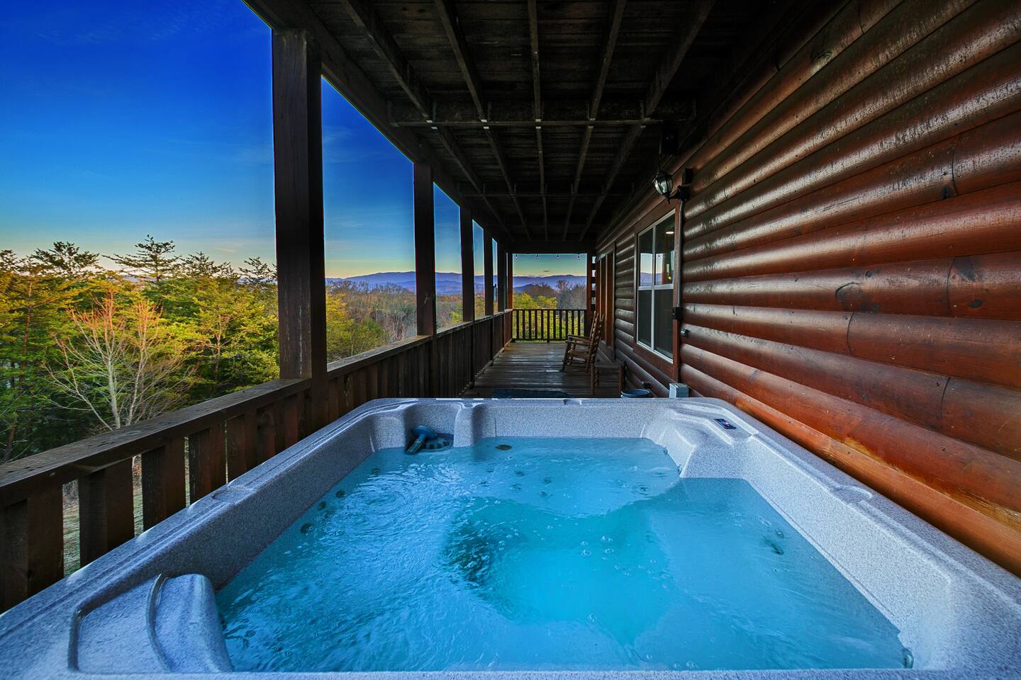 - Relax in the hot tub or on one of the two porch swings while soaking in the serene mountain atmosphere.