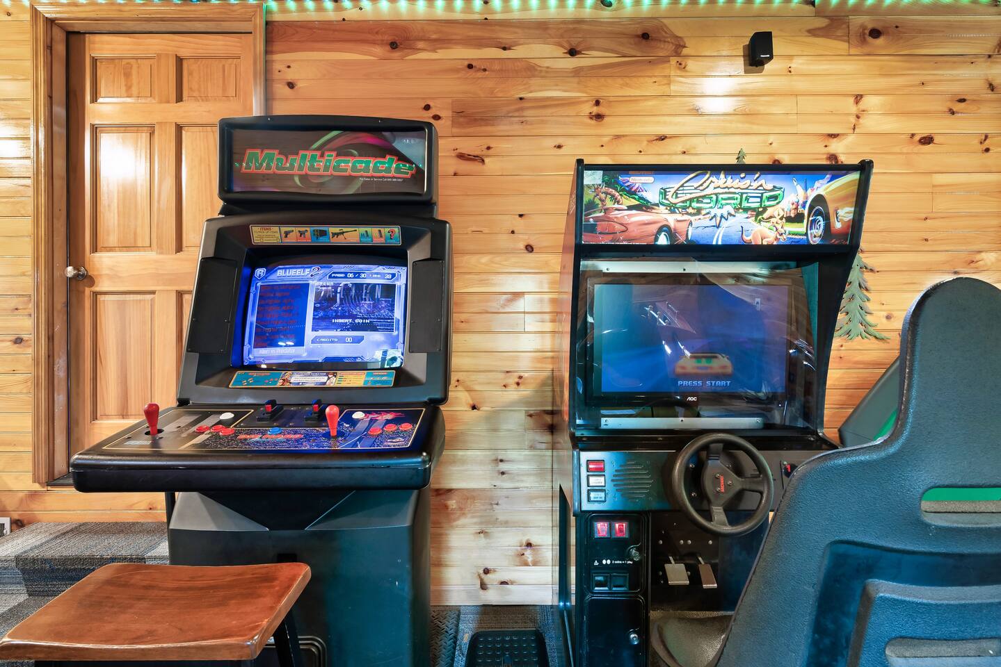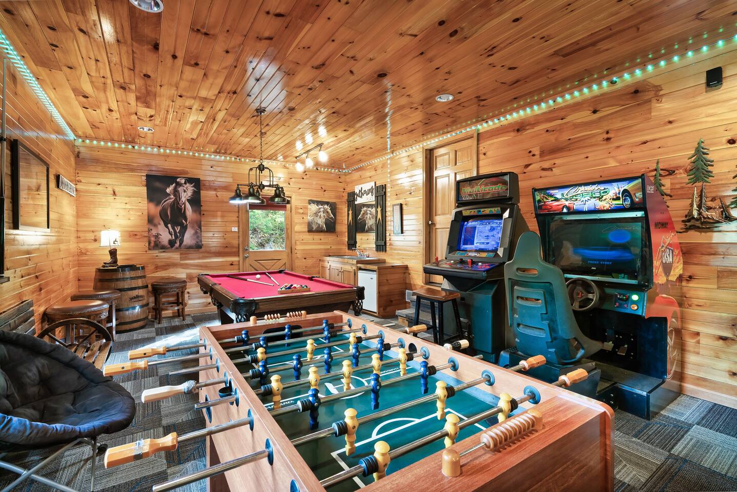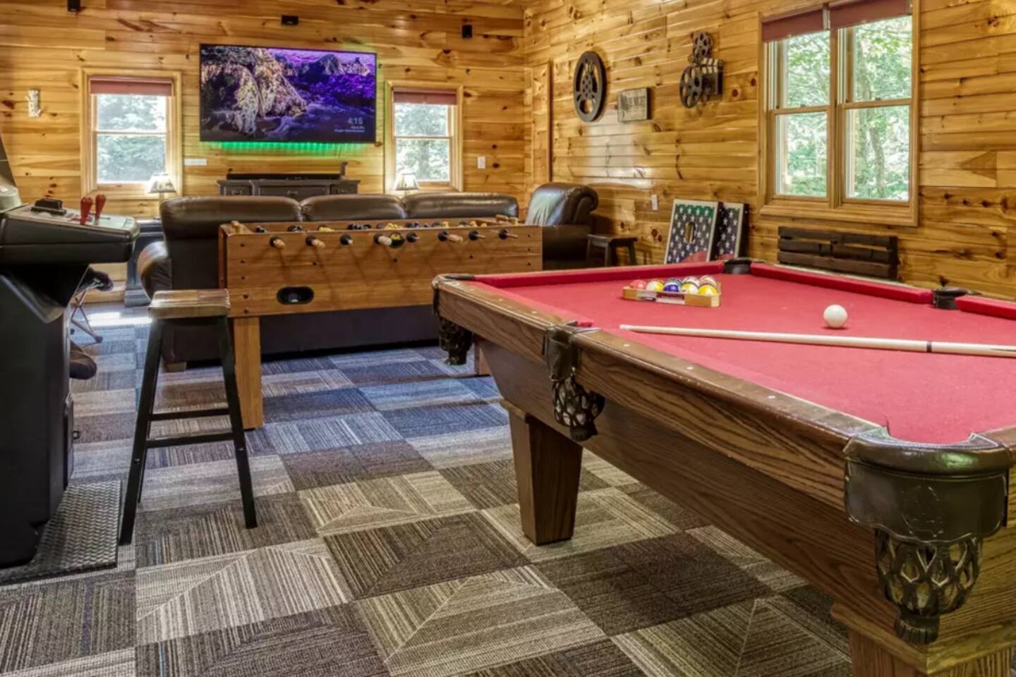 - Game Room: Features an arcade machine, pool table, and leather seating for hours of fun.