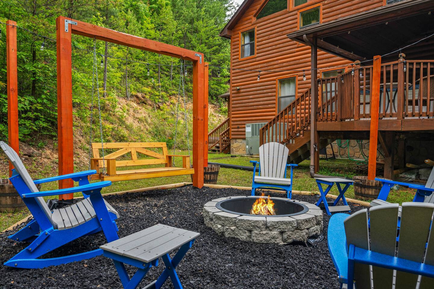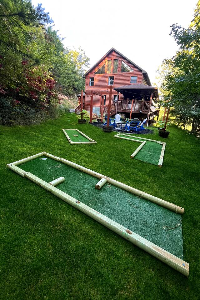 -Backyard: With large fire pit, swing seat, and mini golf for fun!