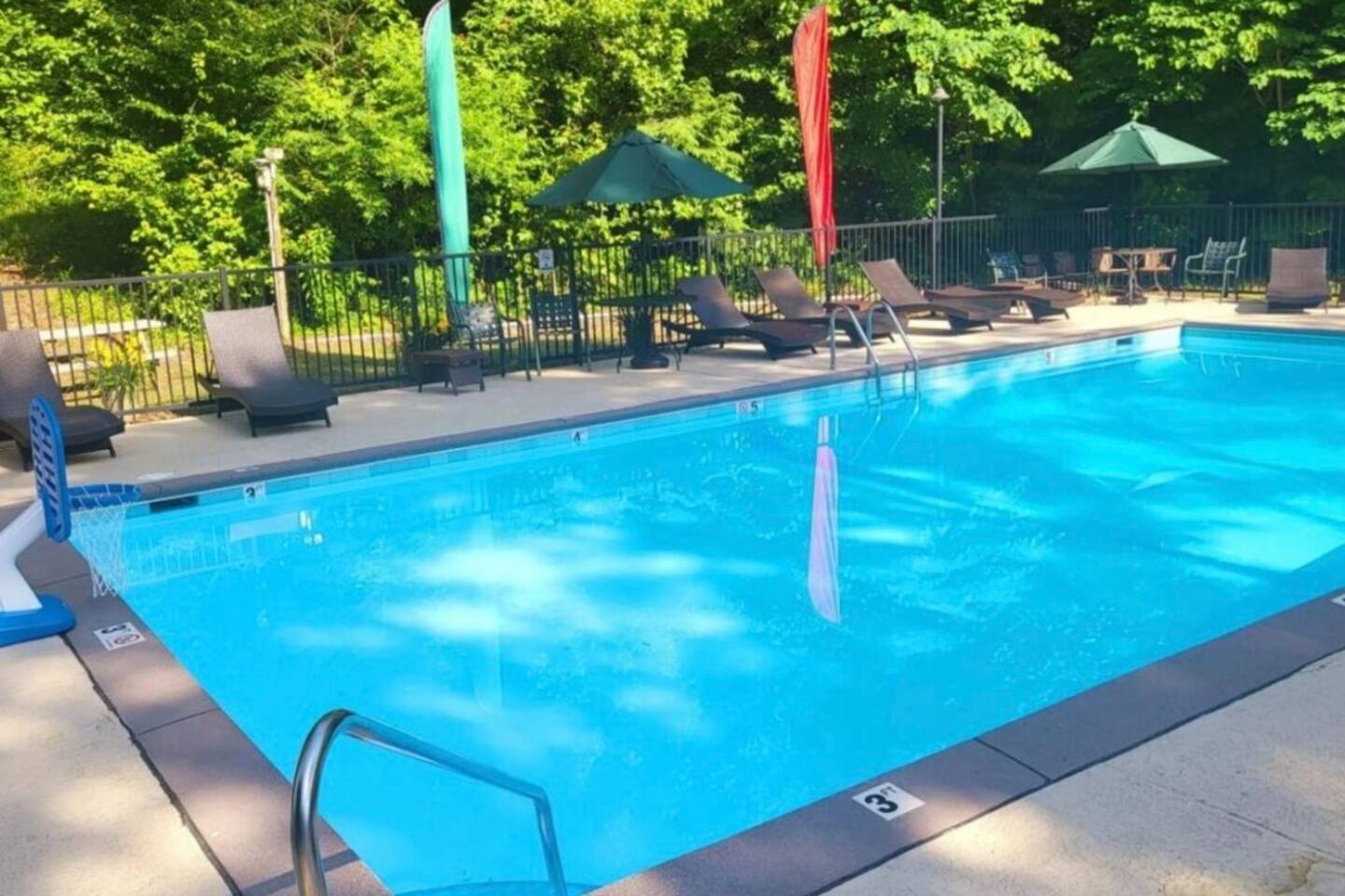 •Resort amenities include swimming pool, tennis/pickleball courts, playground, & frisbee golf