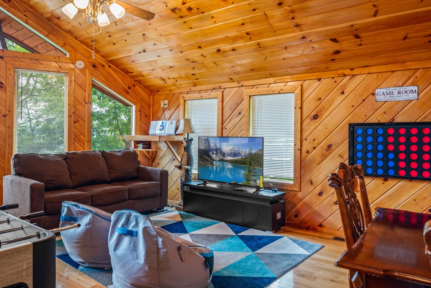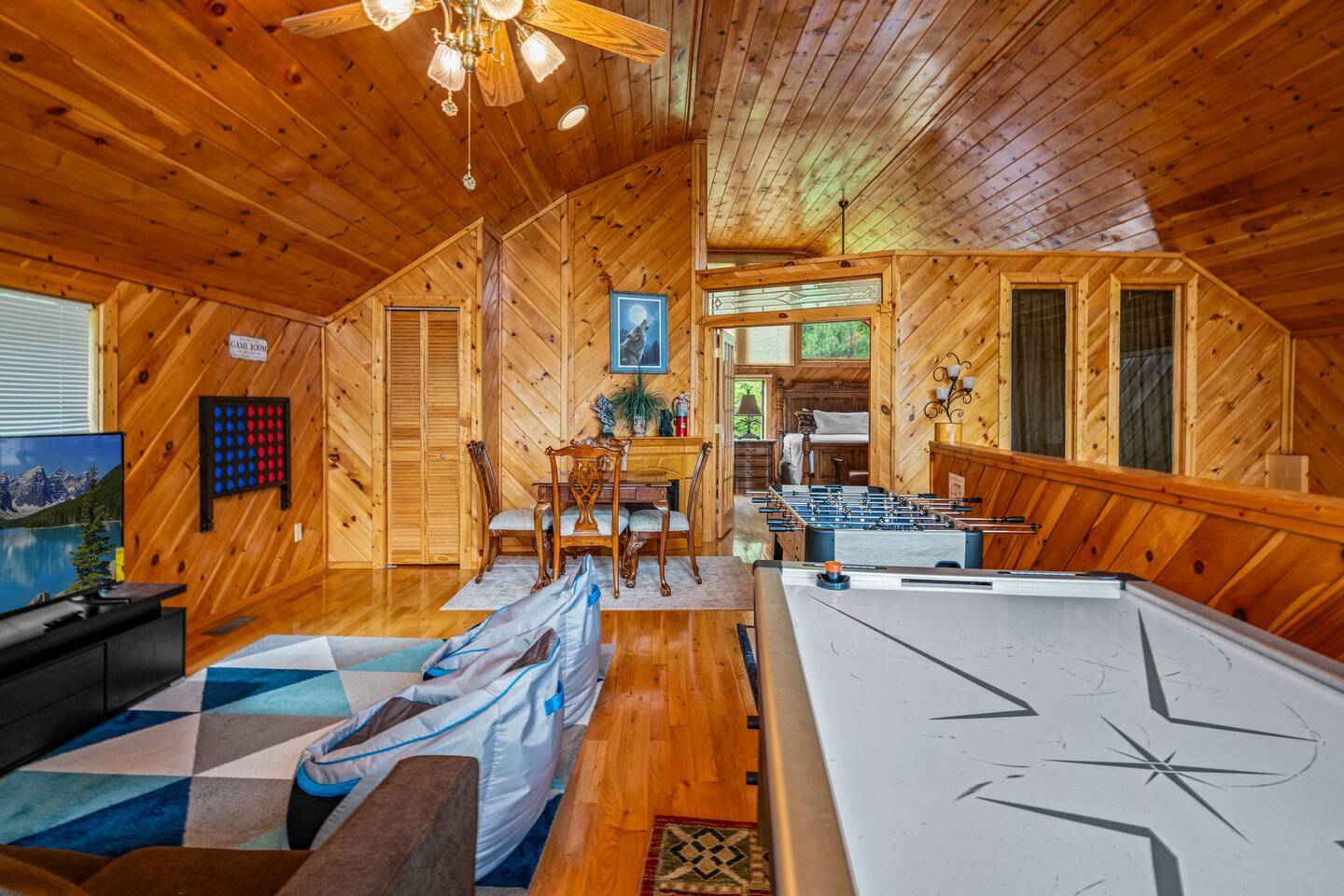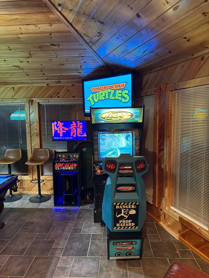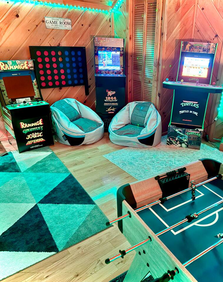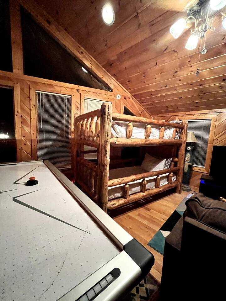 -Loft with bunk beds, streaming TV, air hockey, foosball, three arcades, giant connect 4, sleeper sofa, and electric fireplace for the kids to play