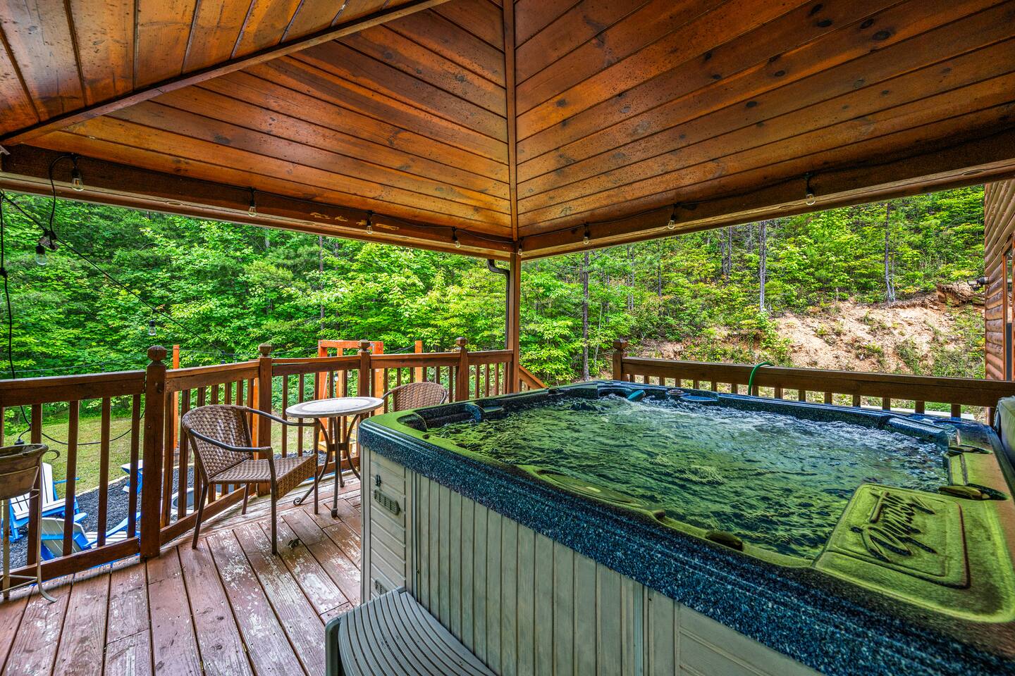 •Covered hot tub w/outdoor seating & dining