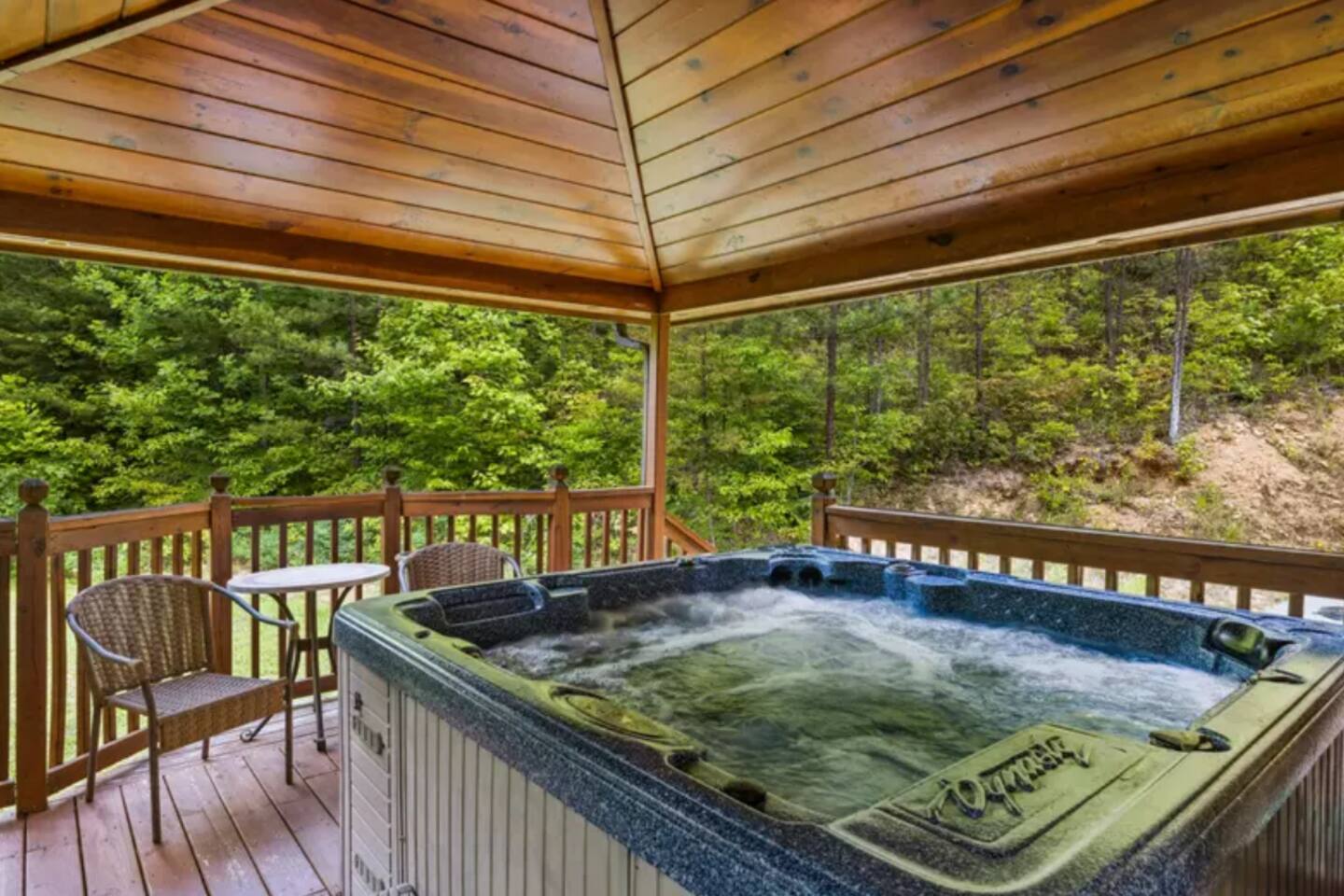 - Private Hot Tub: Relax under the gazebo in the outdoor hot tub while soaking in the serene mountain views. Outdoor seating too!