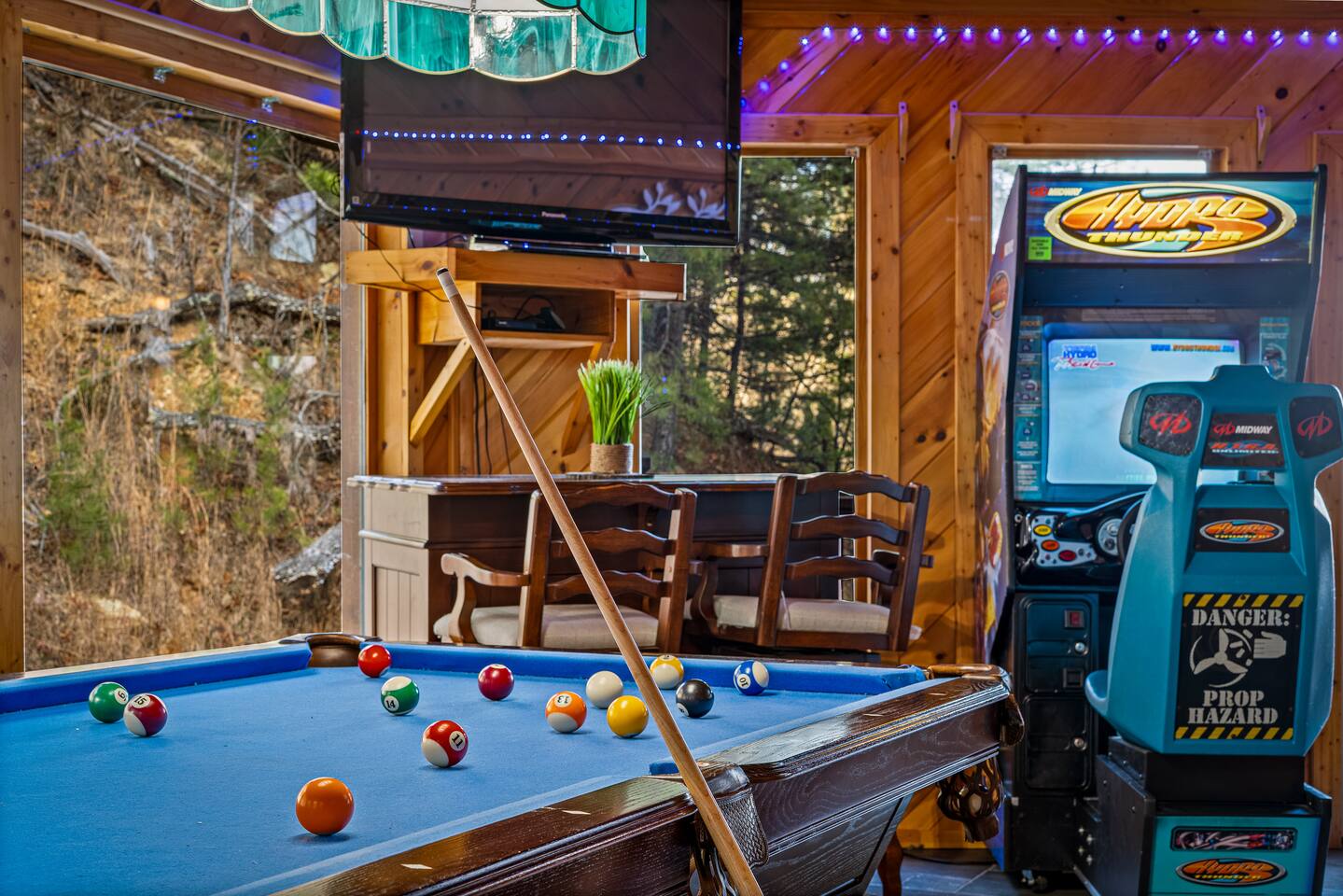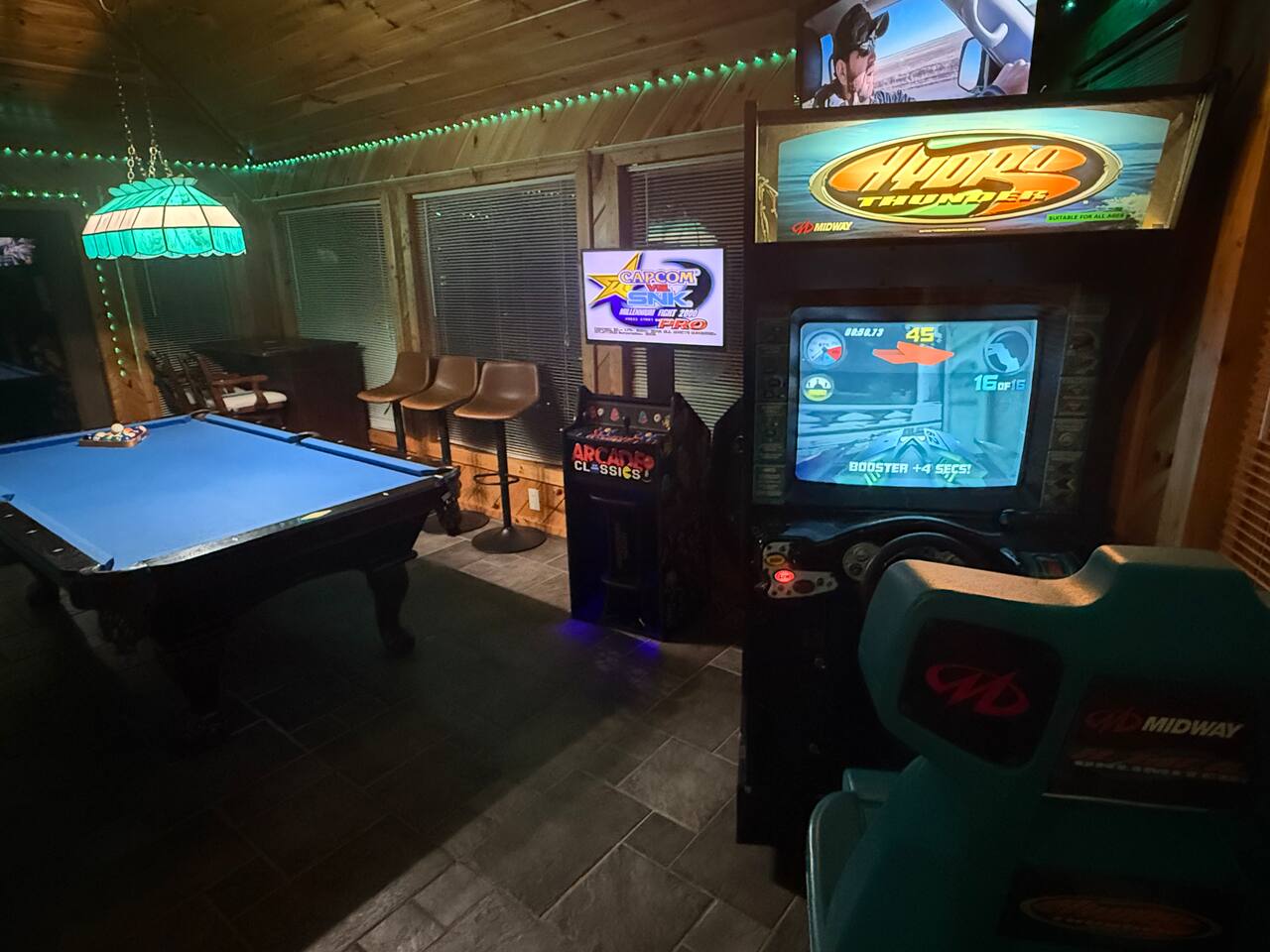 - Game Room: Billiards table, multicade, Hydro Thunder sit down racing arcade, and streaming TV.