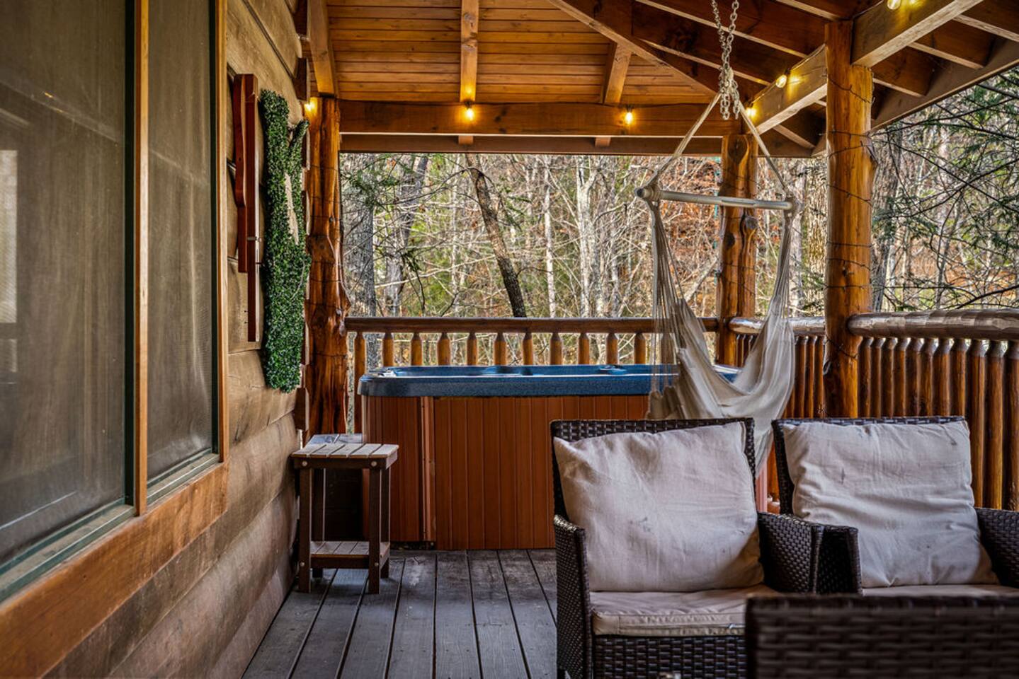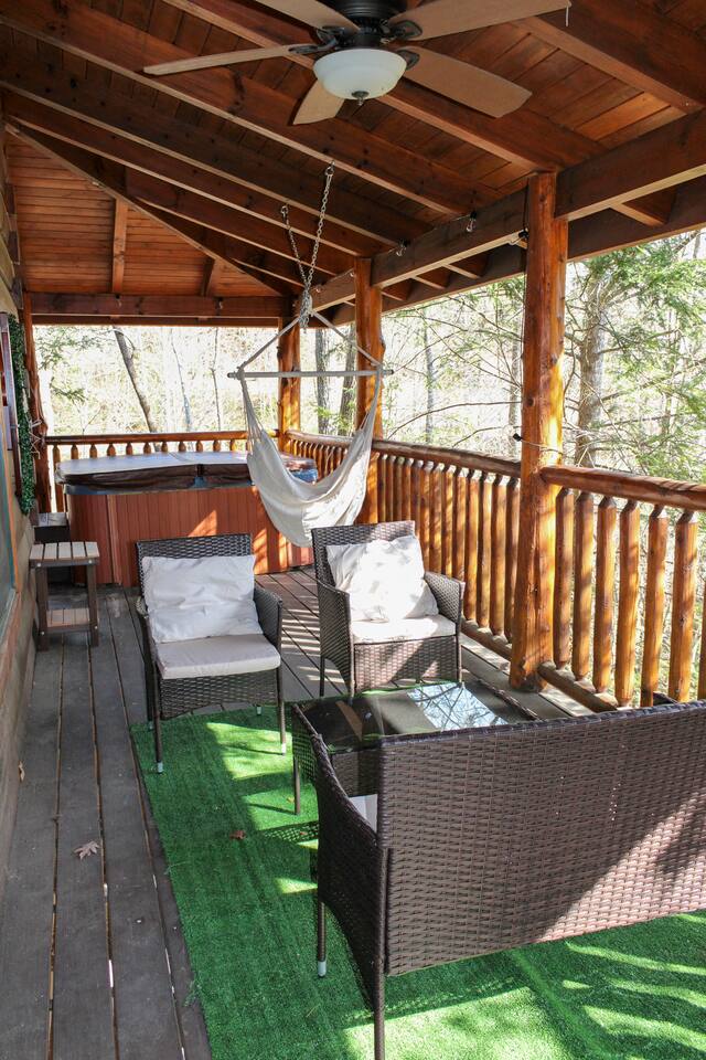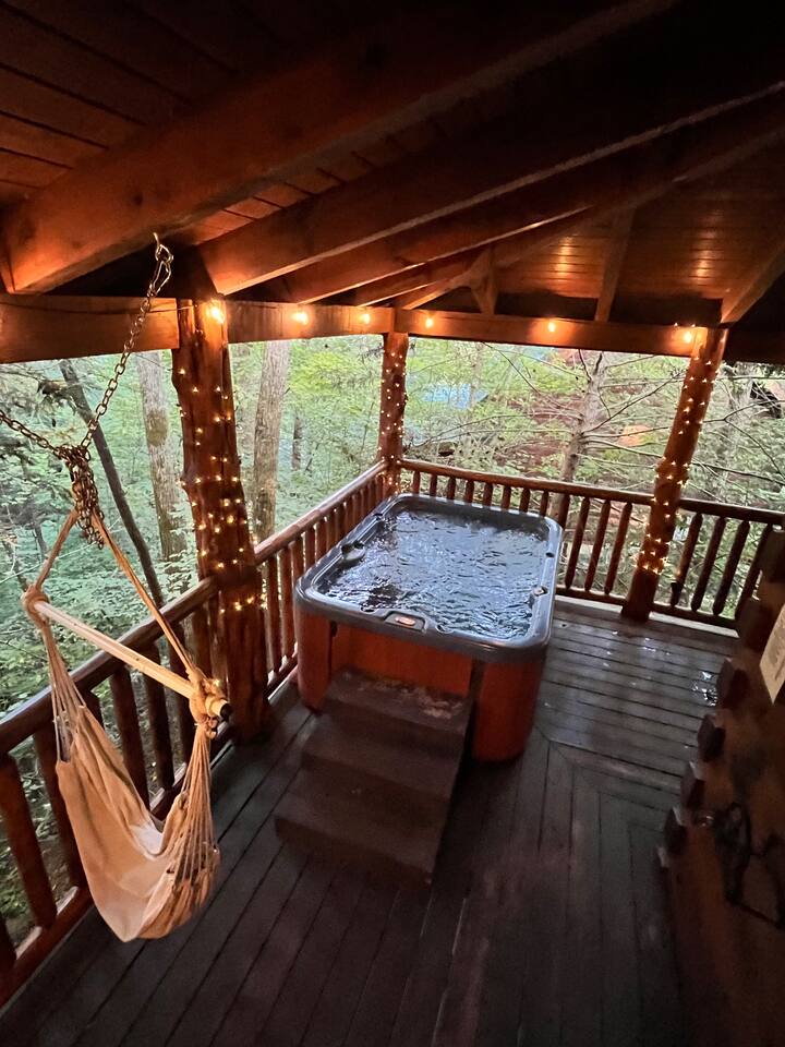 ✔︎ 2 large decks w/covered hot tub, hammocks, & swing
