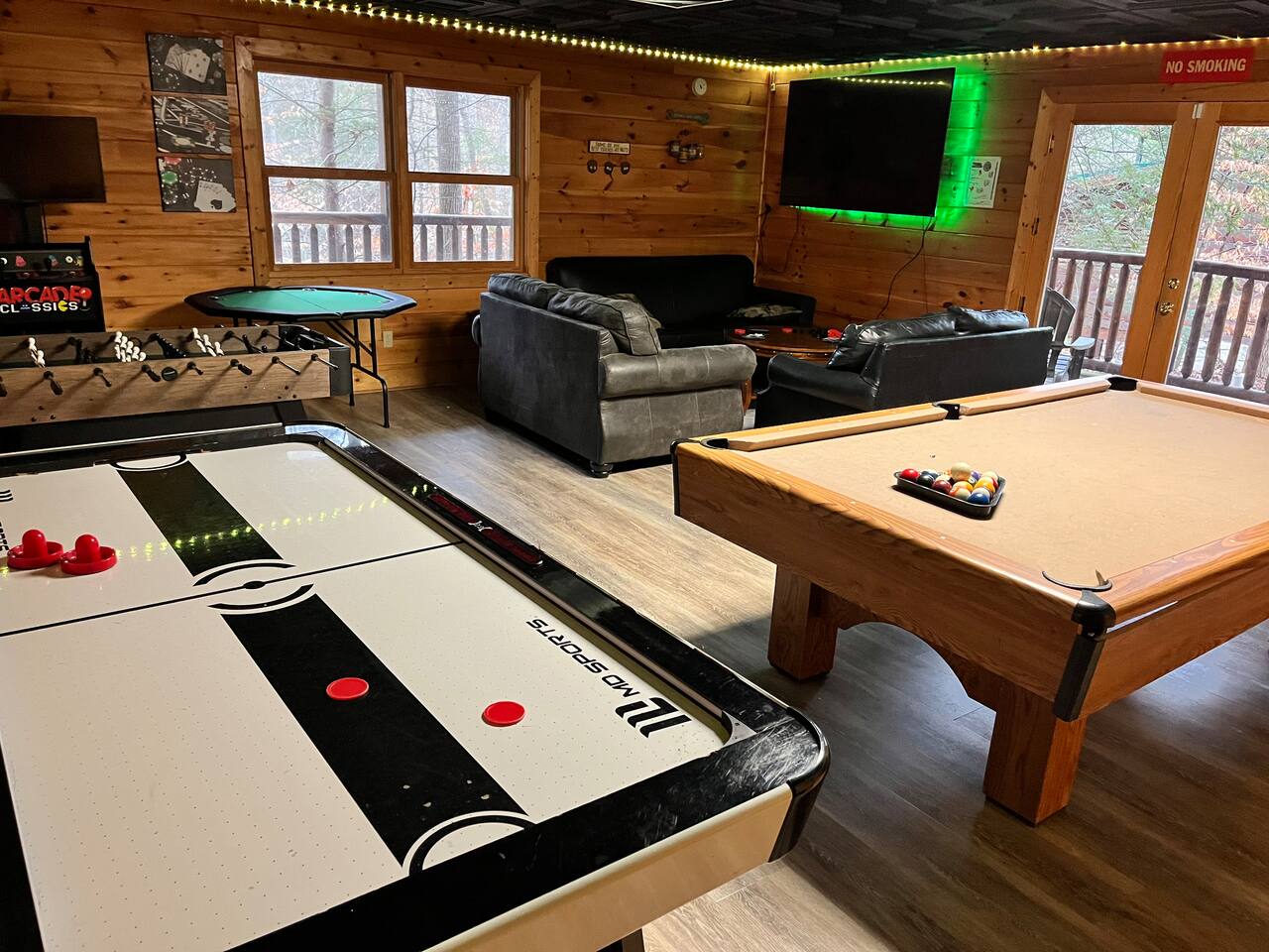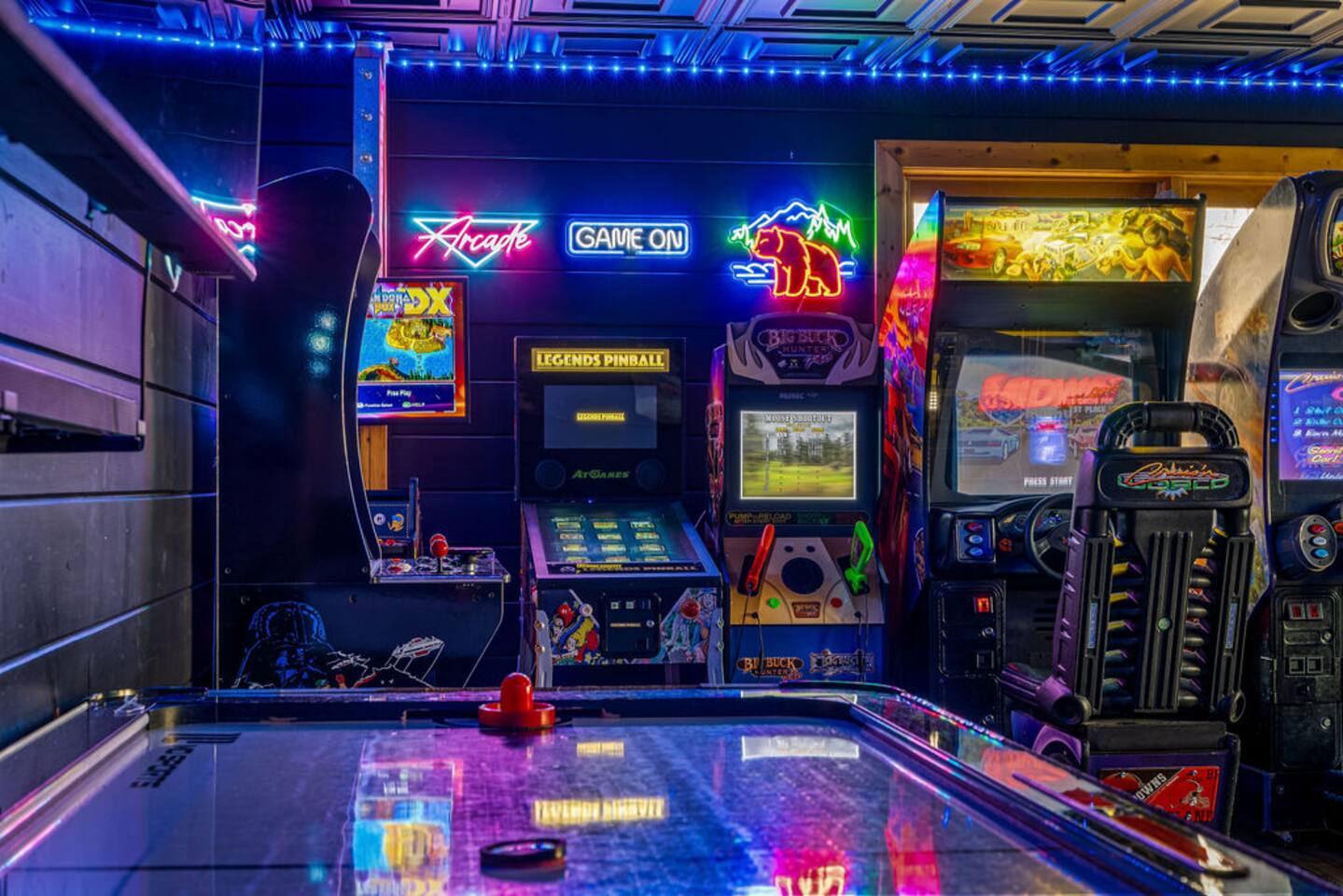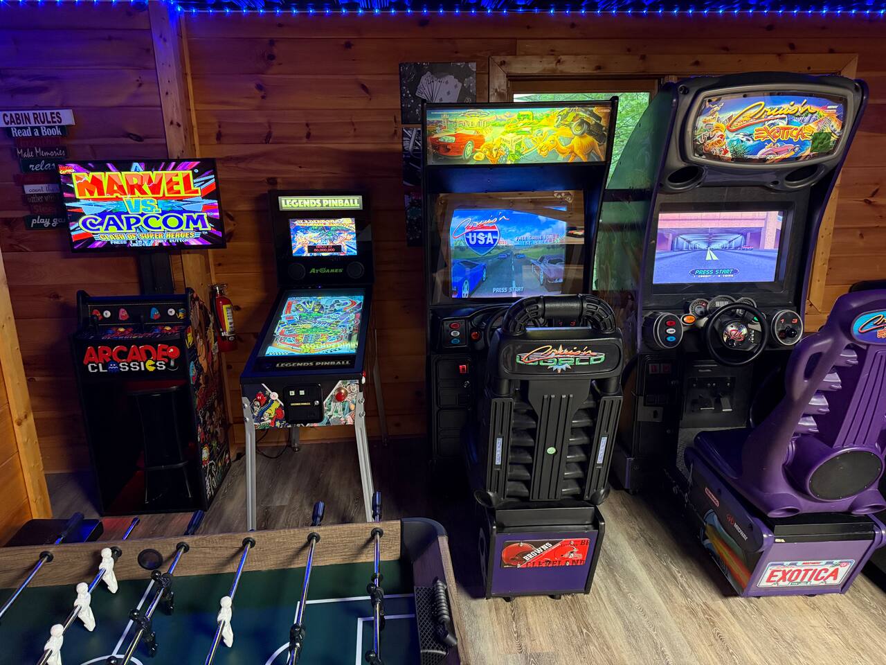 ✔︎ Renovated fun zone w/billiards, 2 Cruisin’ Exotica games, air hockey, foosball, arcade & movie area