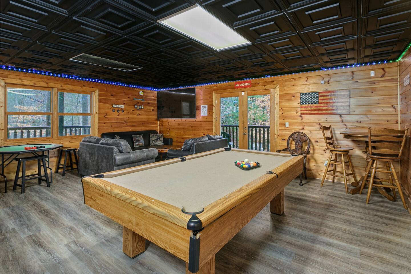 Located in Smoky Cove Resort near PForge, this stunning cabin is the perfect mix of comfort, fun, & pool access!